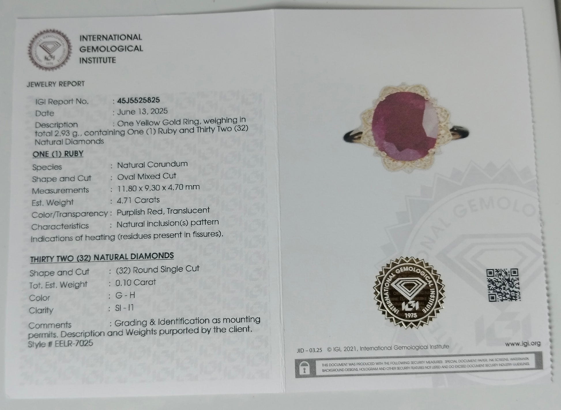 4.81 Ct Oval Mixed Cut Natural Corundum Ruby 14K Gold Ring