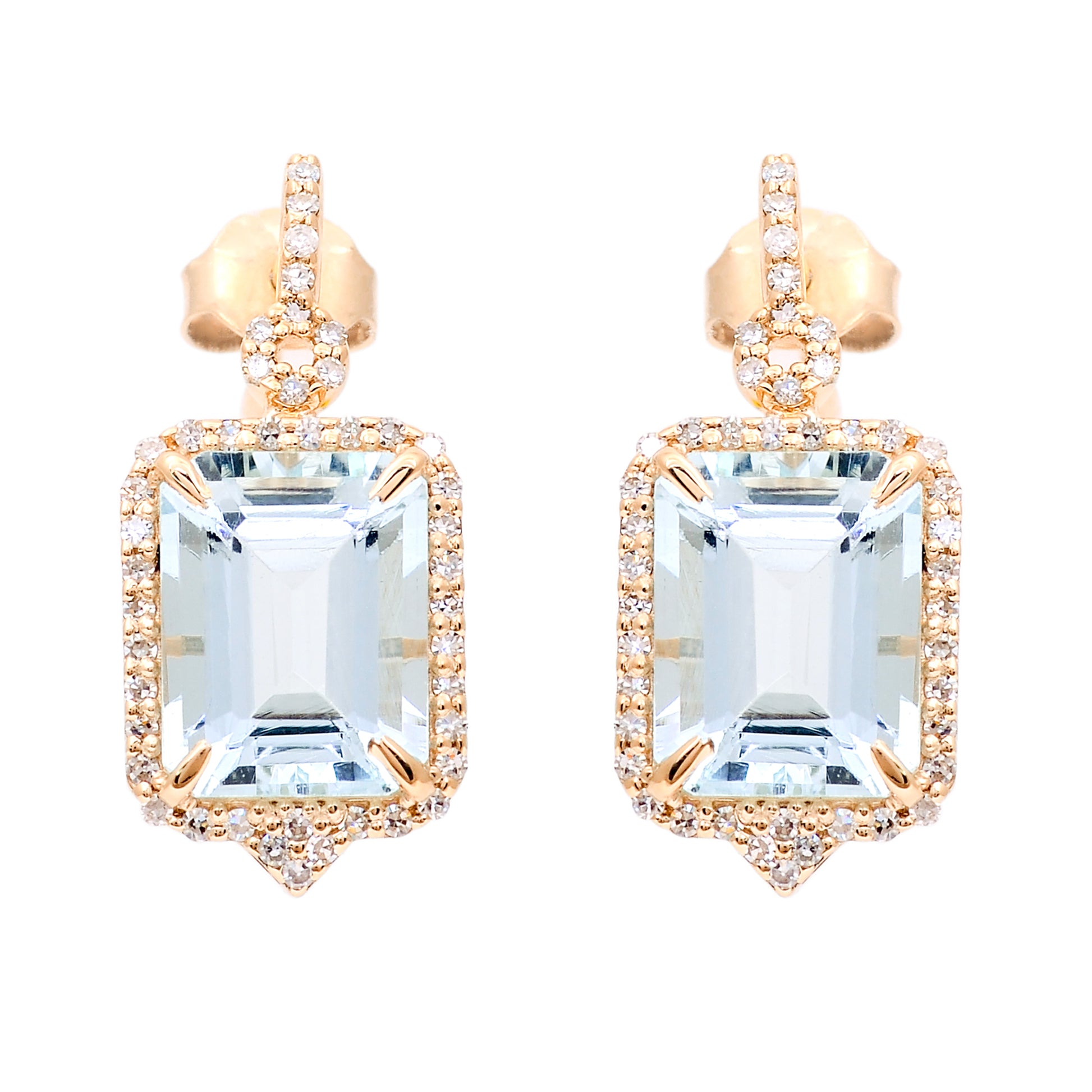 4.82 Ct Octagon Step Cut Natural Aquamarine 14K Gold Earrings