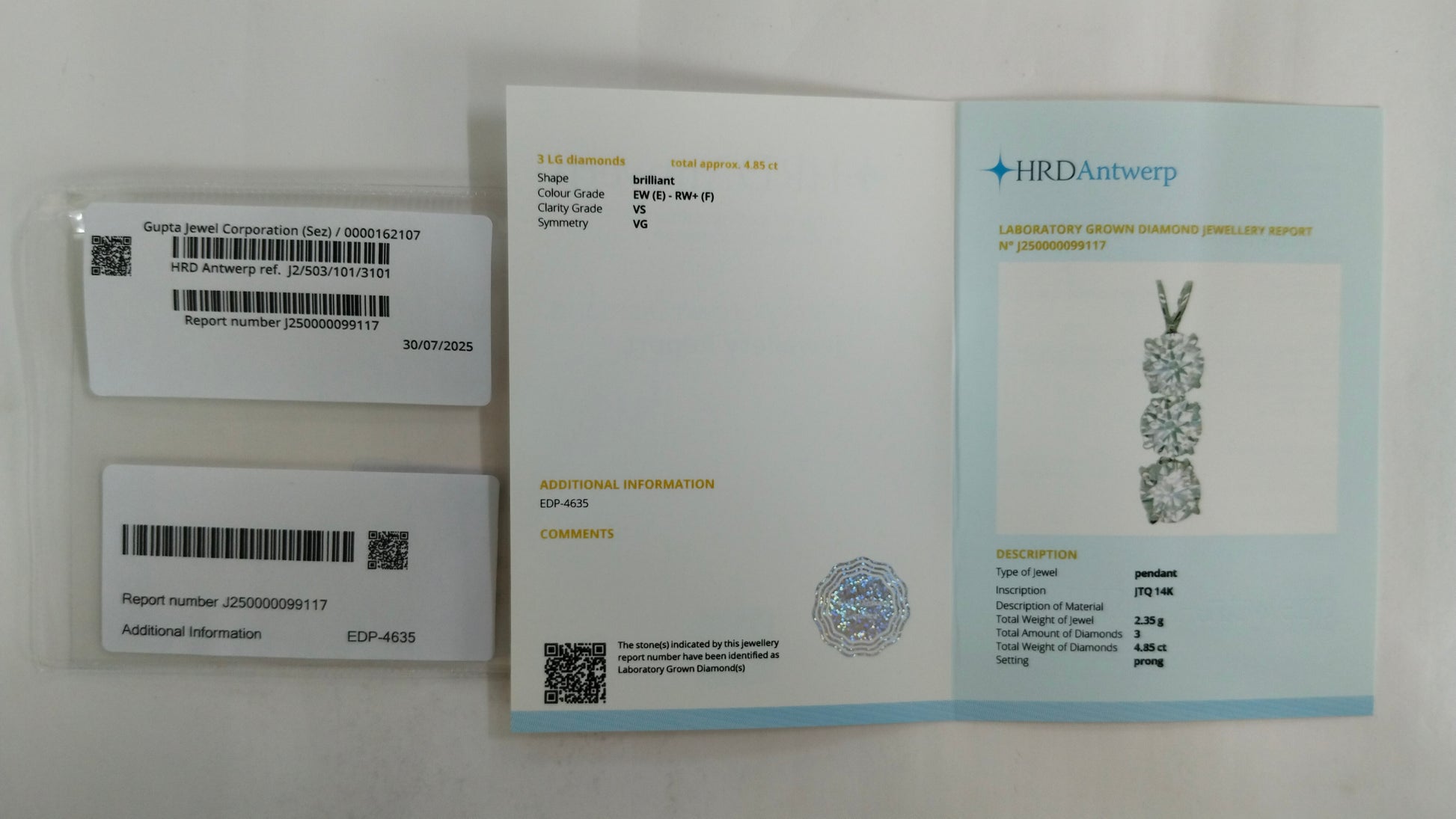 4.85 Carats Lab Grown Diamond 14K Gold Pendant