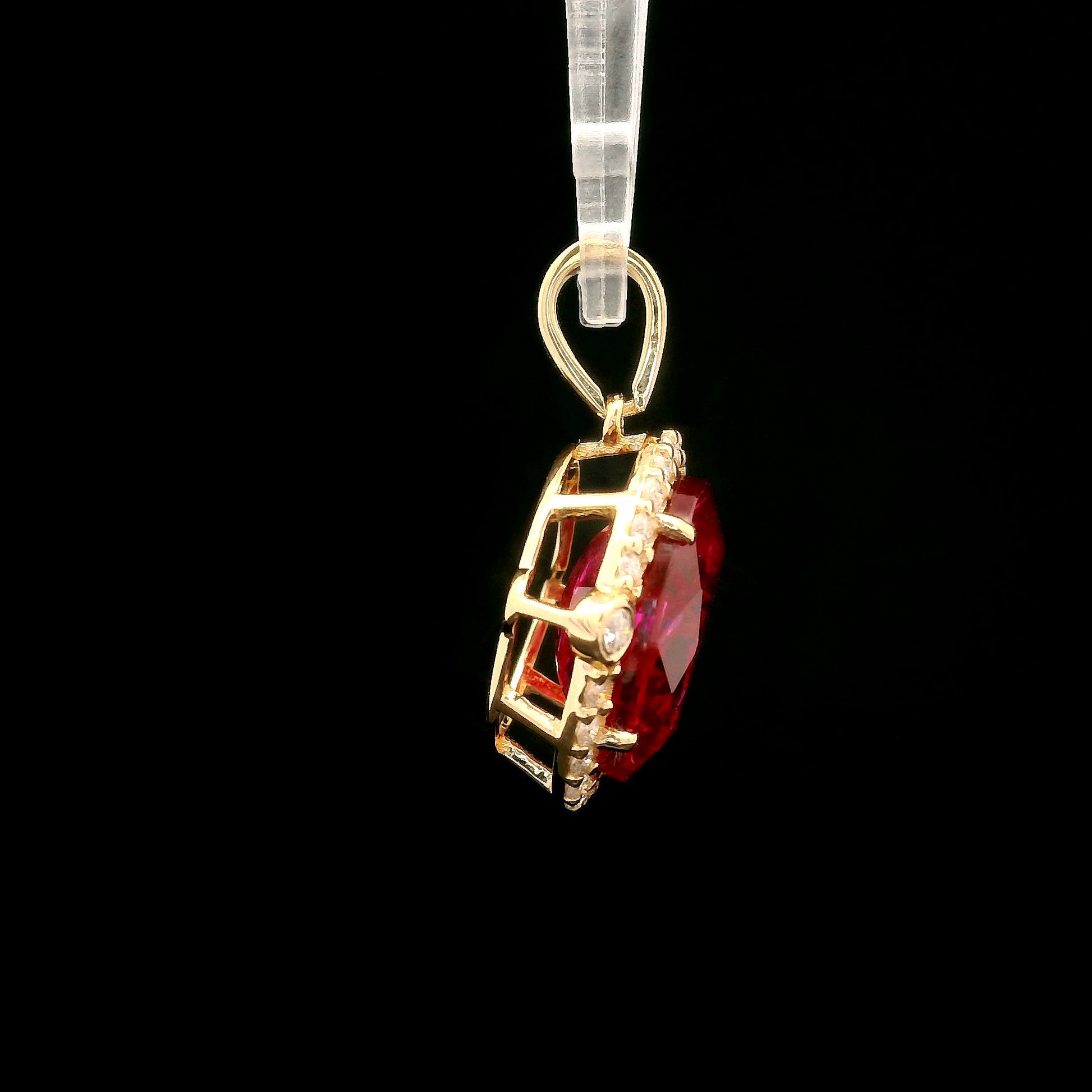 4.89 Total Carat Lab Grown Ruby 14K Gold Pendant
