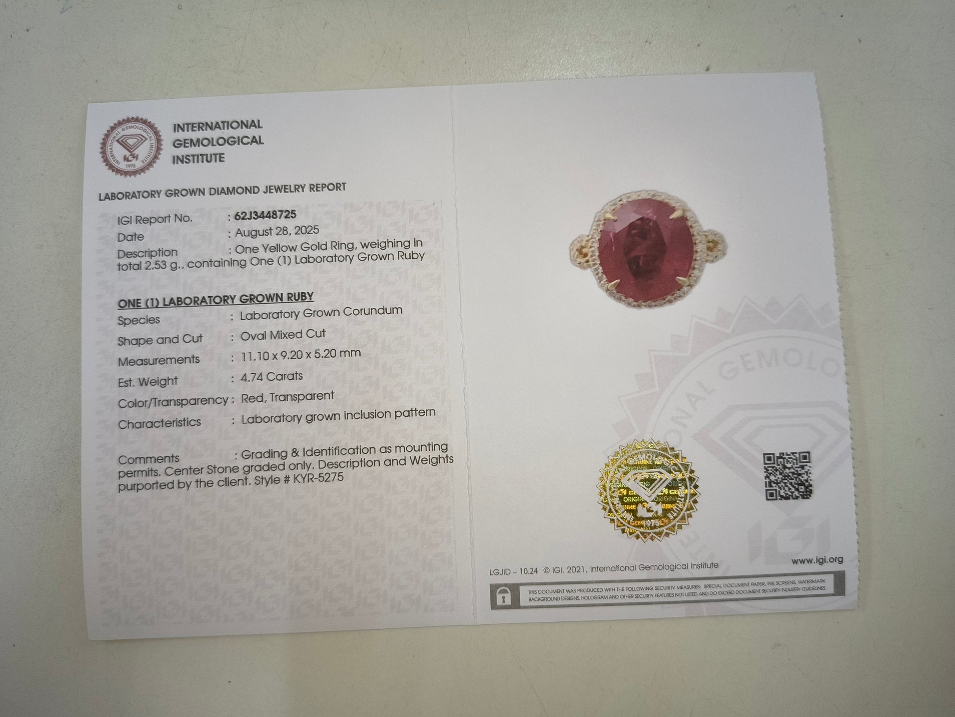 4.90 Total Carat Lab Grown Ruby 14K Gold Ring