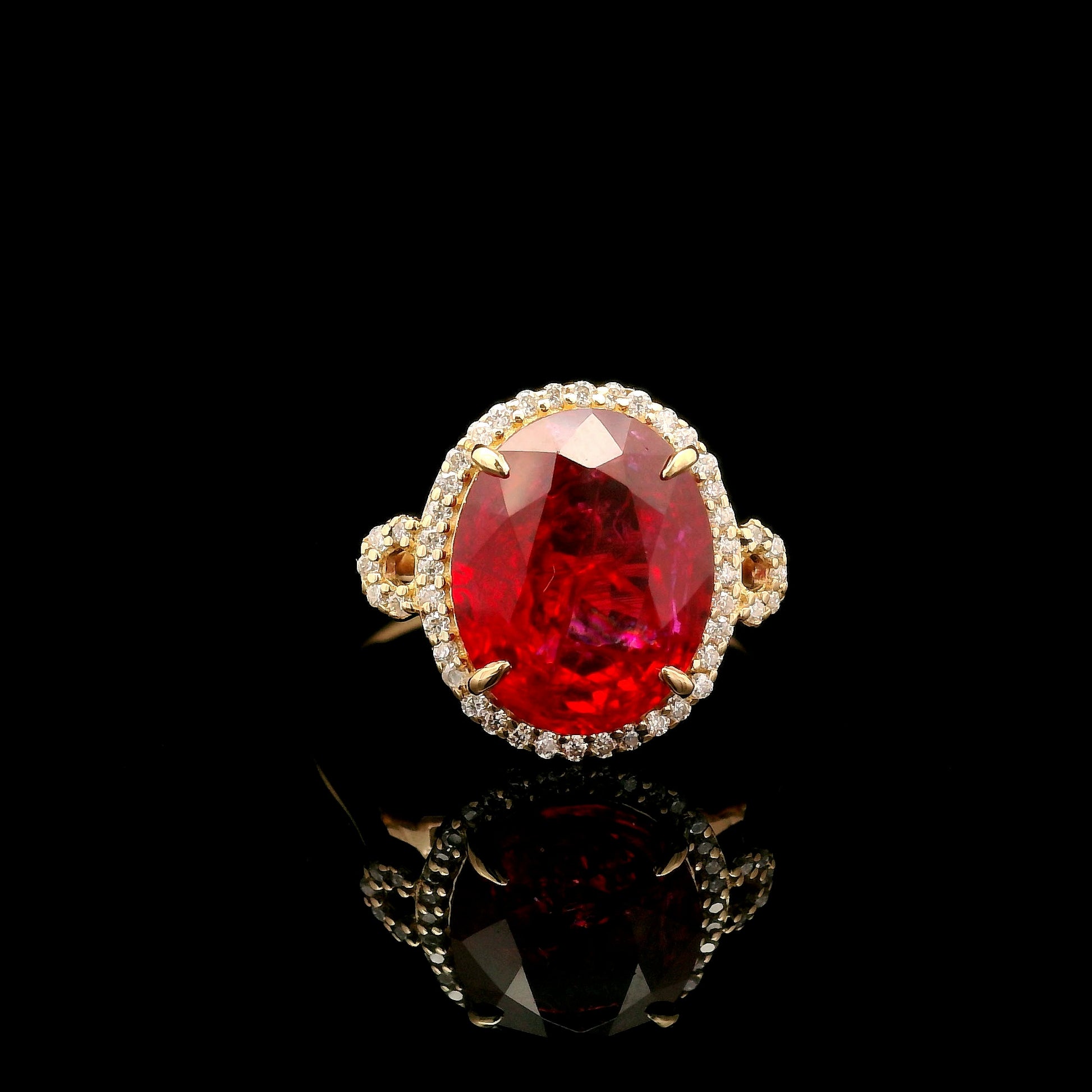 4.90 Ct Oval Mixed Cut Lab Grown Ruby 14K Gold Ring