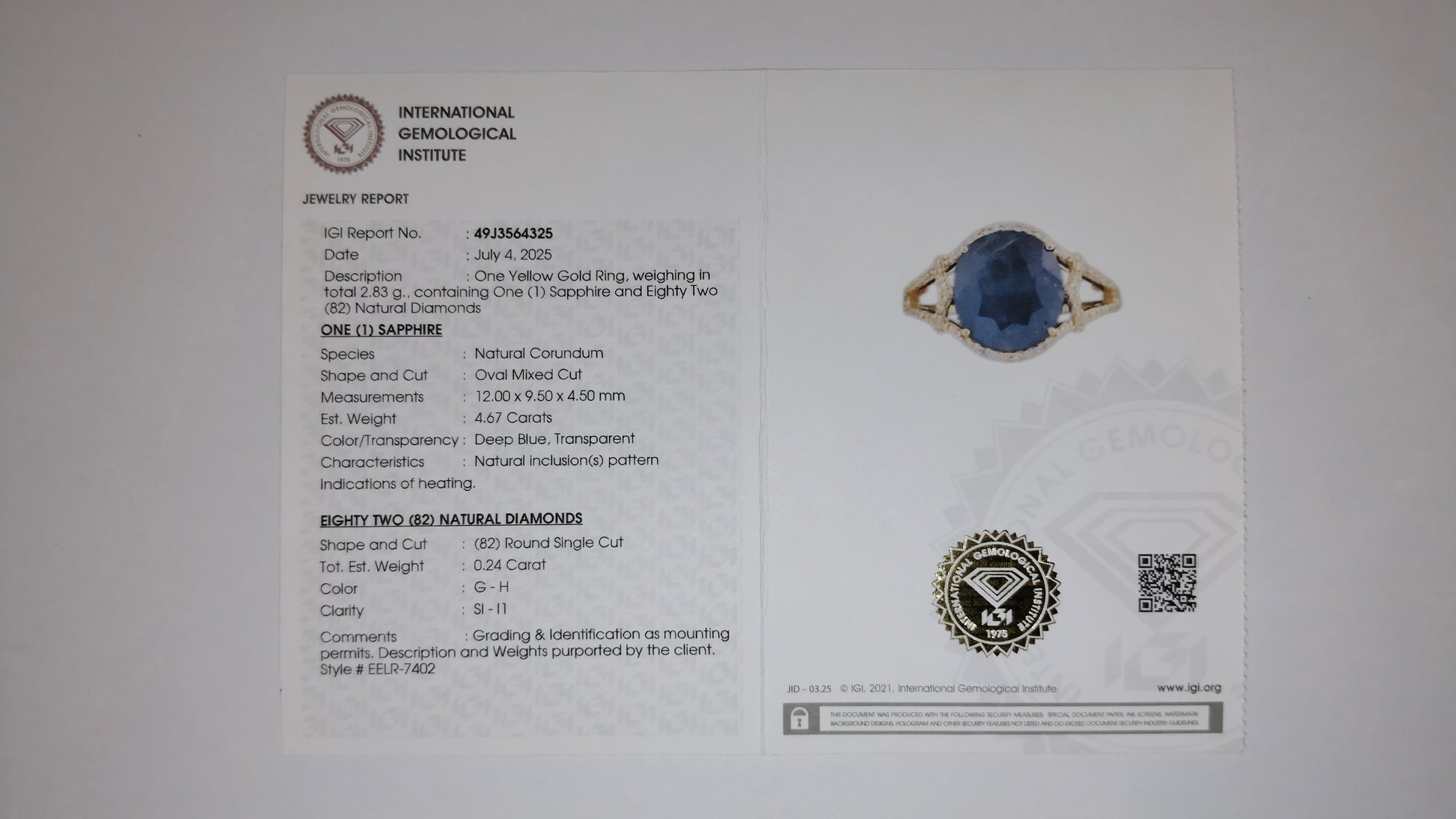 - Lab Name: International Gemological Institute (IGI)