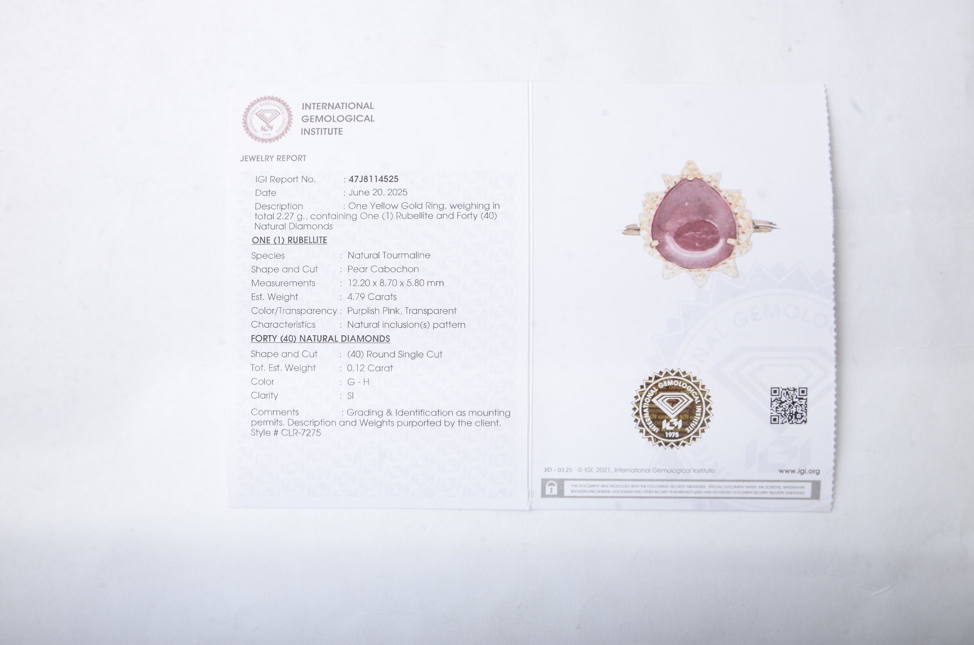 4.91 Ct Pear Cabochon Natural Tourmaline 14K Gold Ring