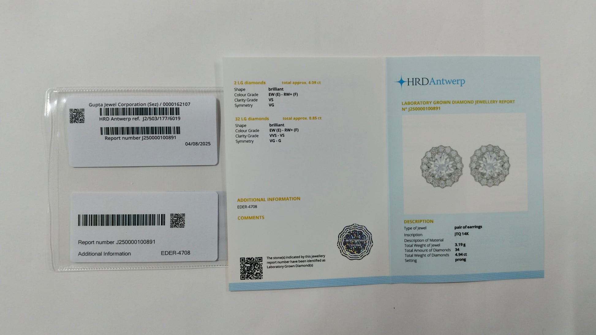4.94-Carat Lab-Grown Diamond Round Cut Brilliant Earrings ? HRD Certified