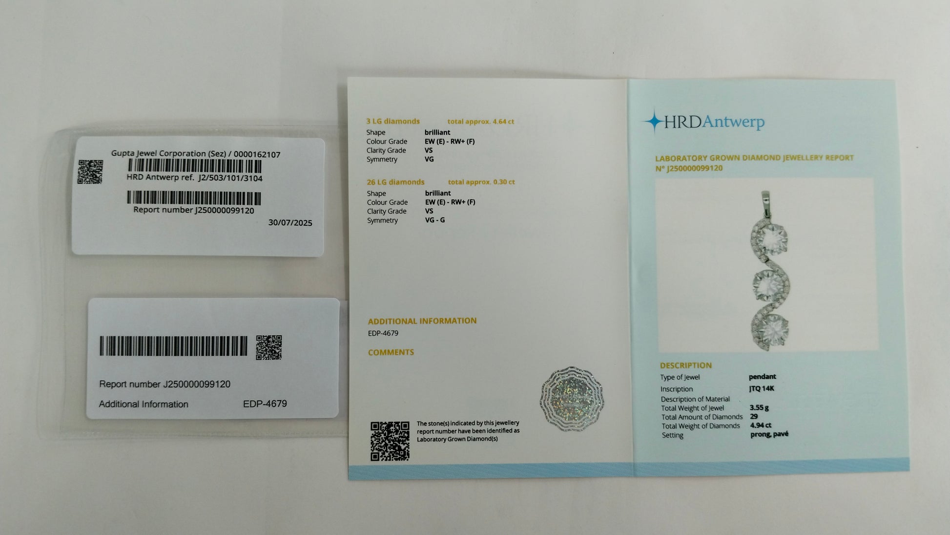 4.94 Carats Lab Grown Diamond 14K Gold Pendant