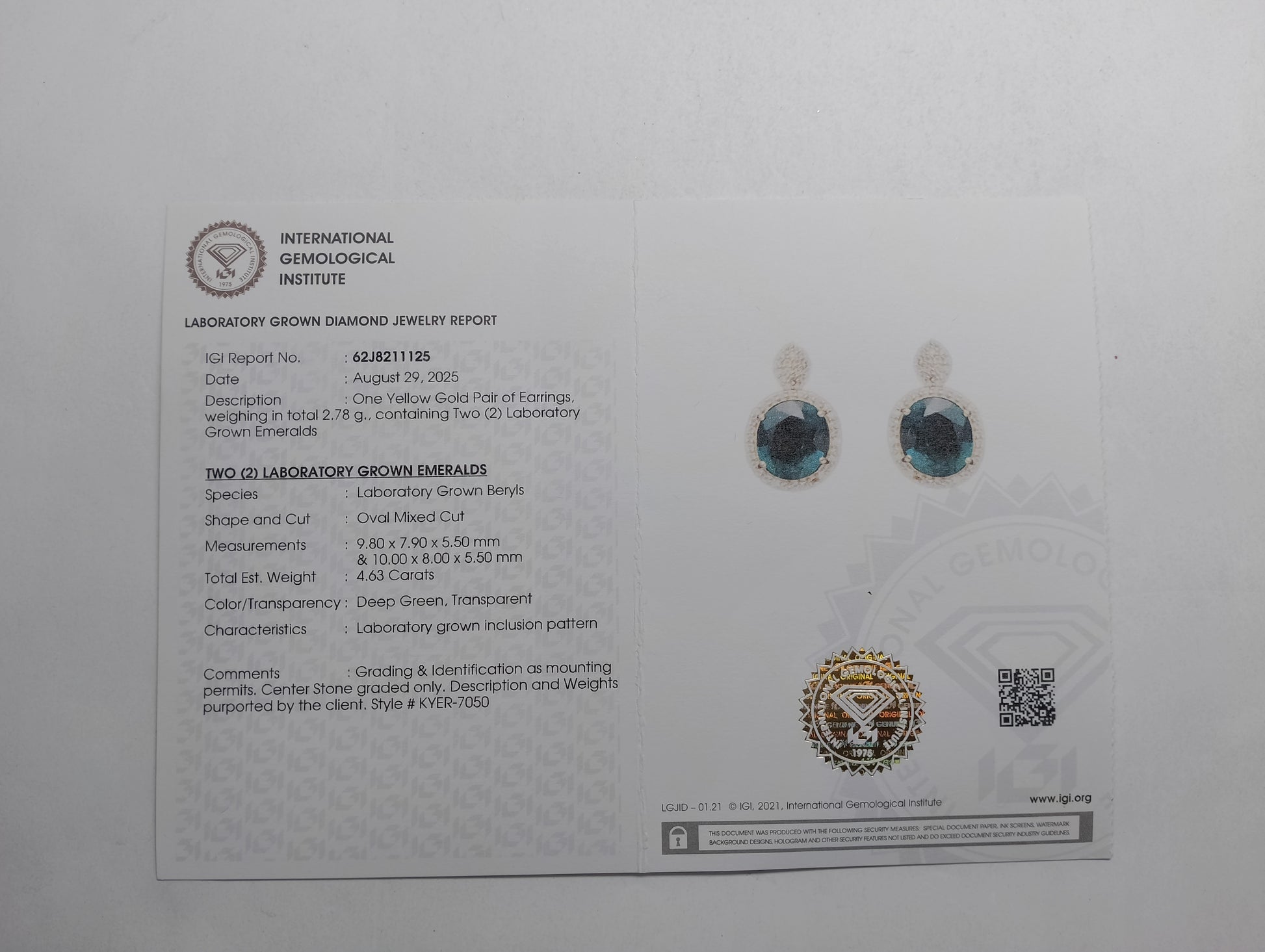 4.94 Ct Oval Mixed Cut Lab Grown Emerald 14K Gold Earrings