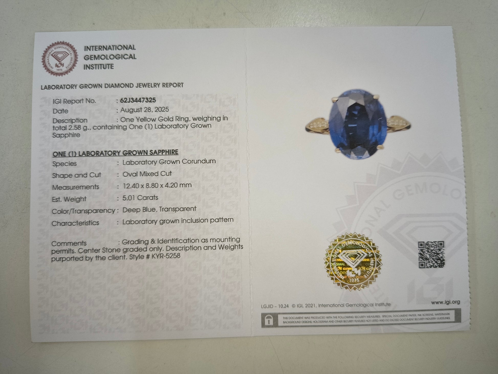 5.04 Ct Oval Mixed Cut Lab Grown Sapphire 14K Gold Ring
