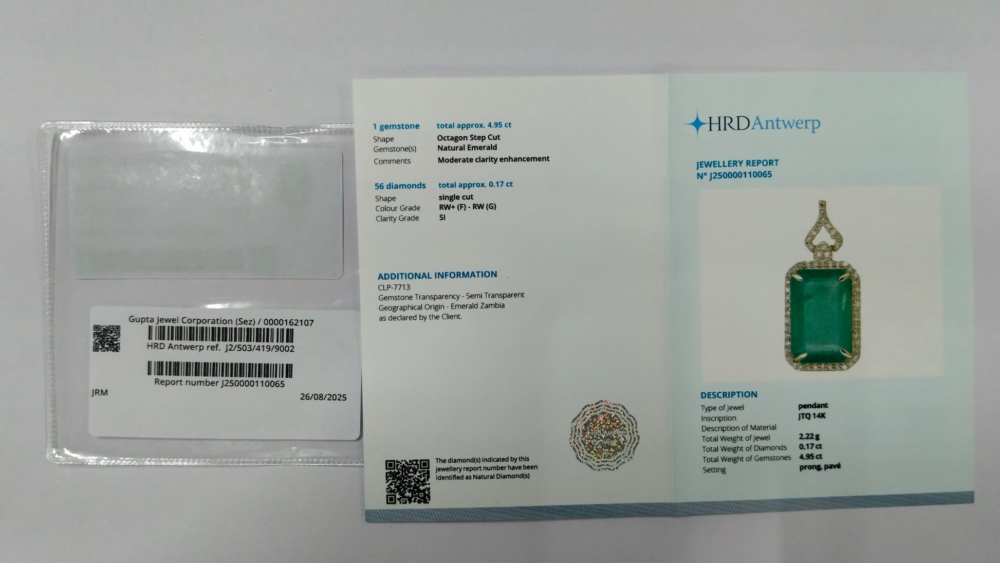 5.12 Total Carat Natural Emerald 14K Gold Pendant