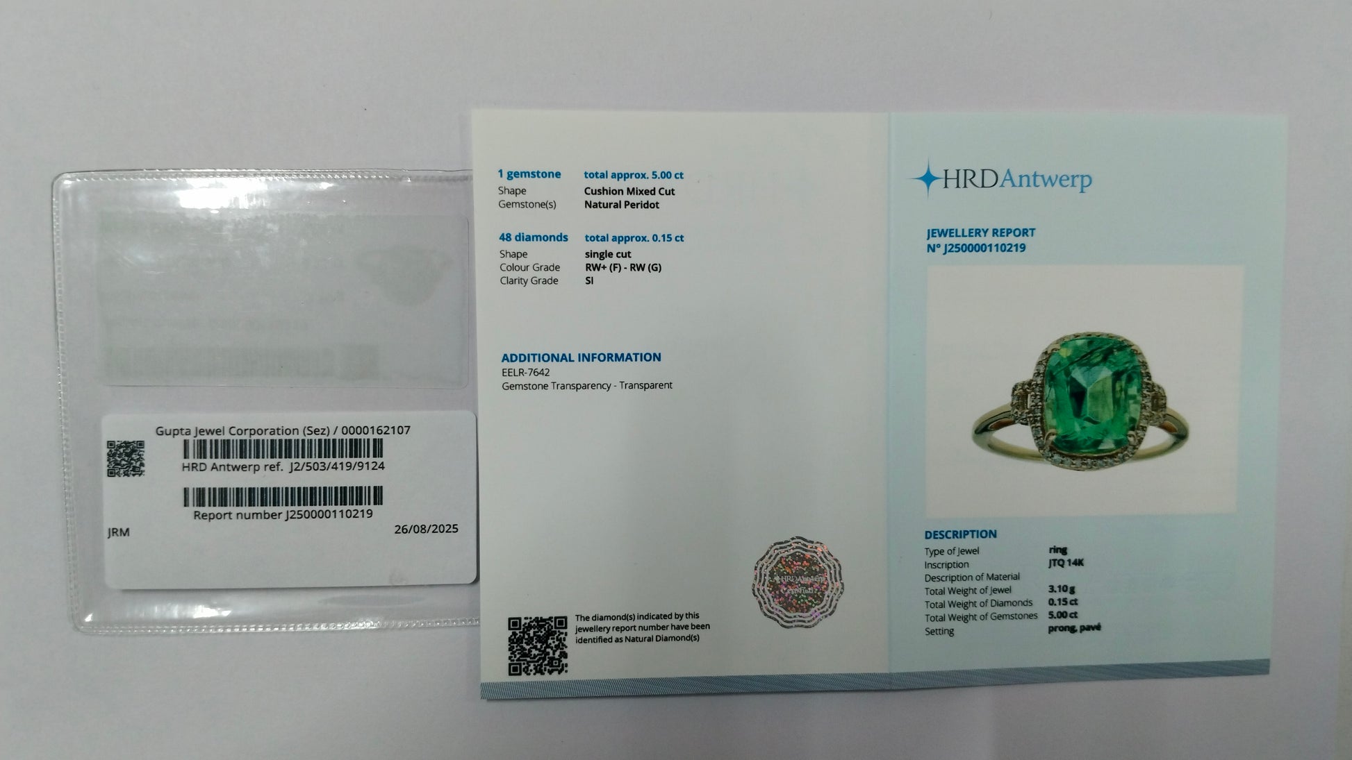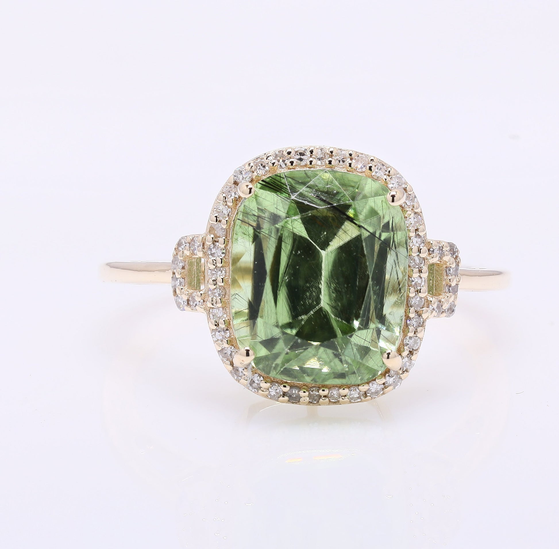 5.15 Ct Cushion Mixed Cut Natural Peridot 14K Gold Ring