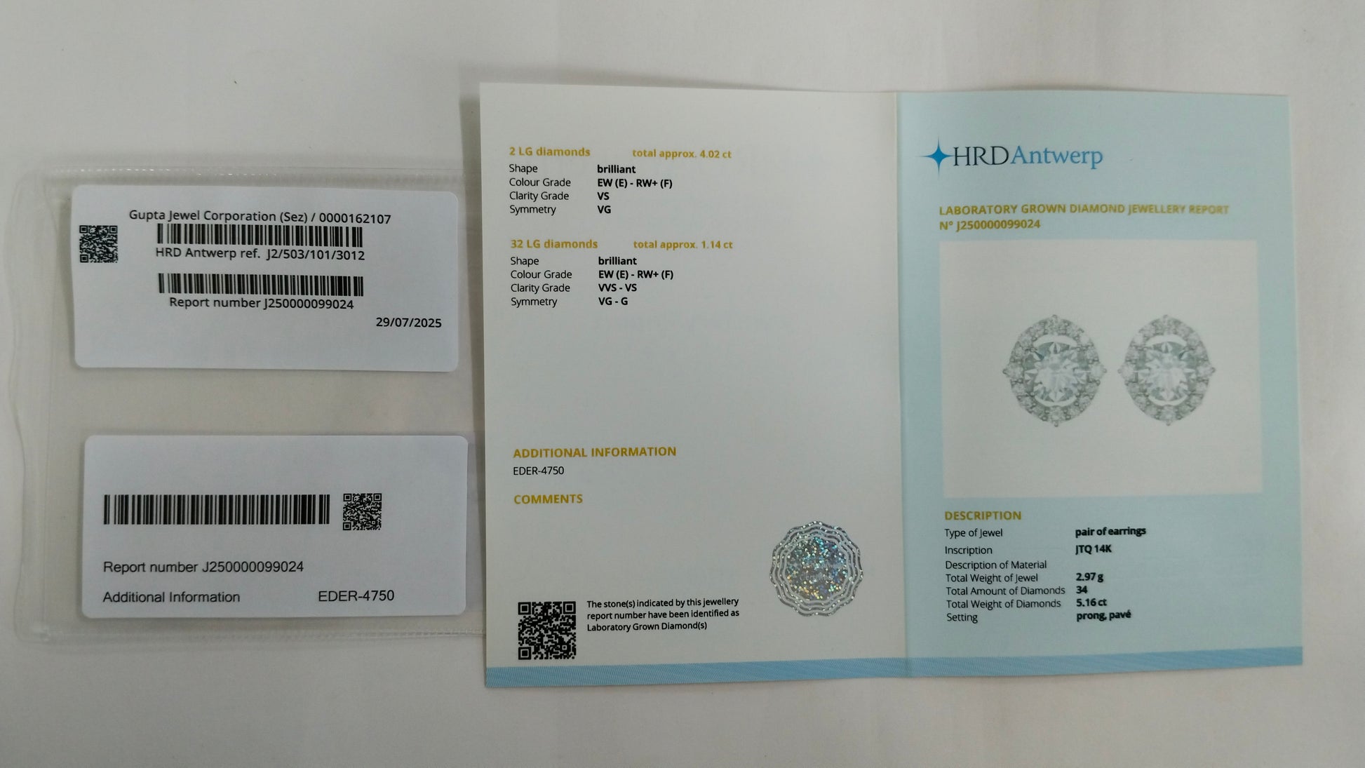 5.16-Carat Lab-Grown Diamond Round Brilliant Earrings - HRD Certified