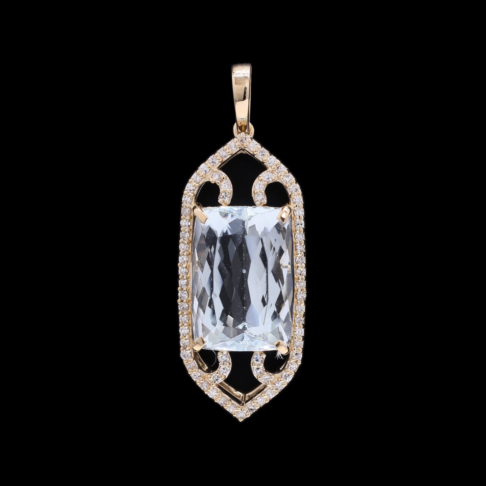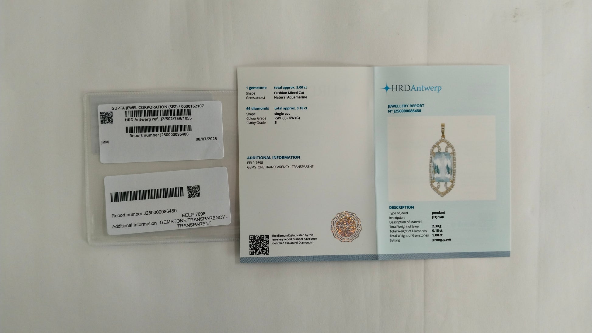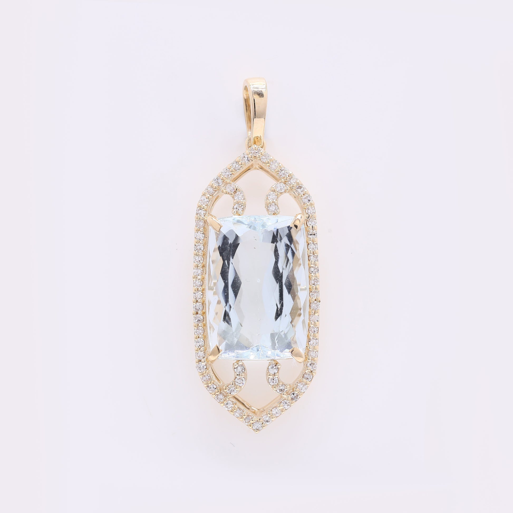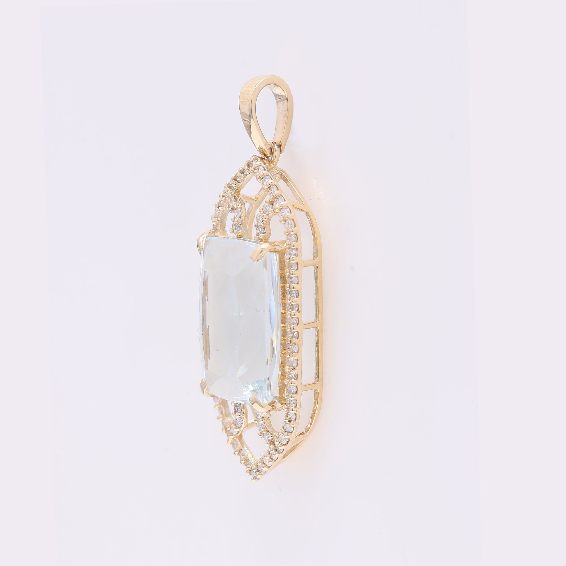 5.18 Ct Cushion Mixed Cut Natural Aquamarine 14K Gold Pendant
