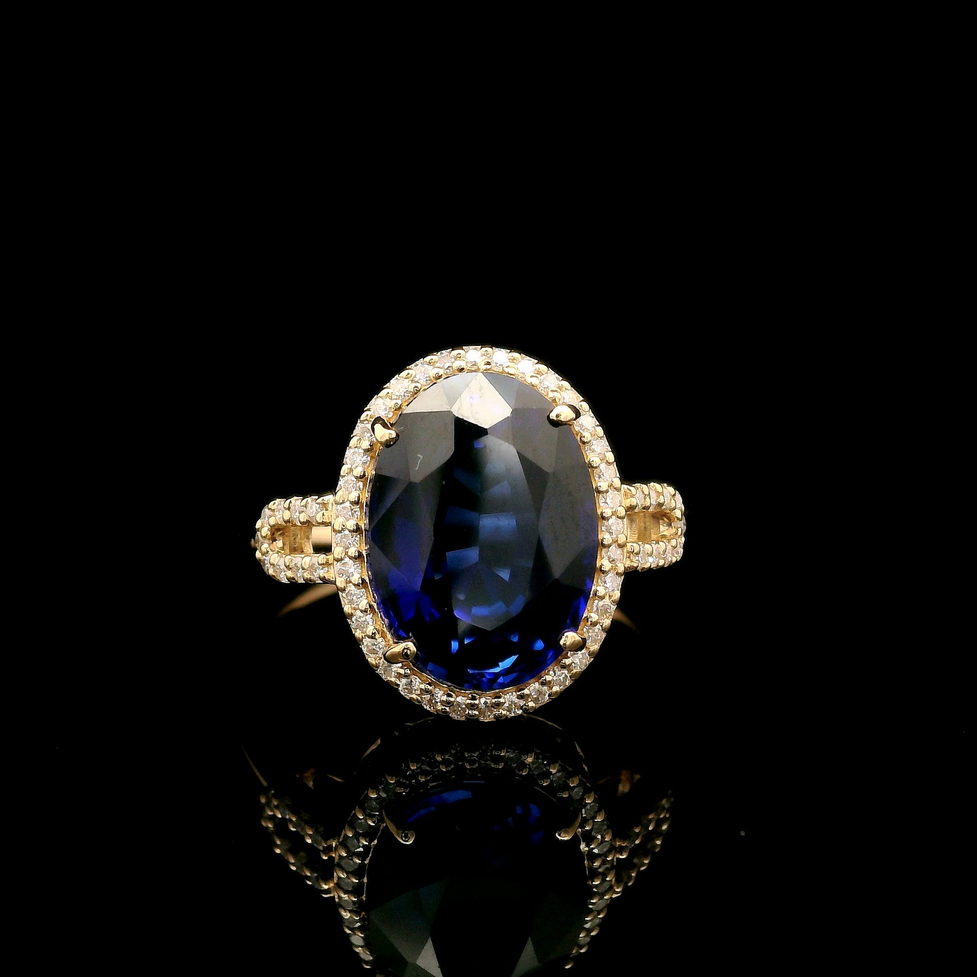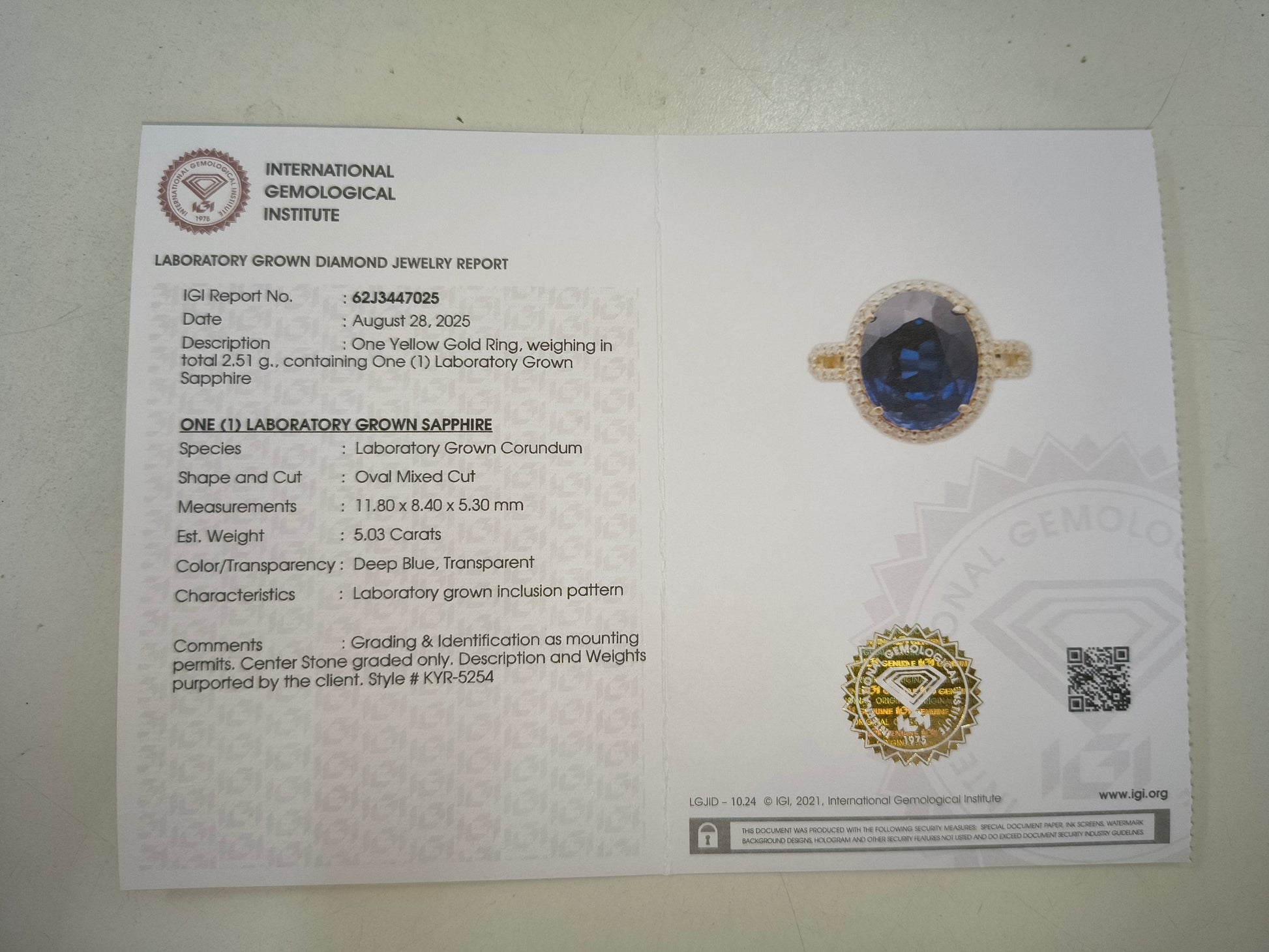 5.19 Total Carat Lab Grown Sapphire 14K Gold Ring