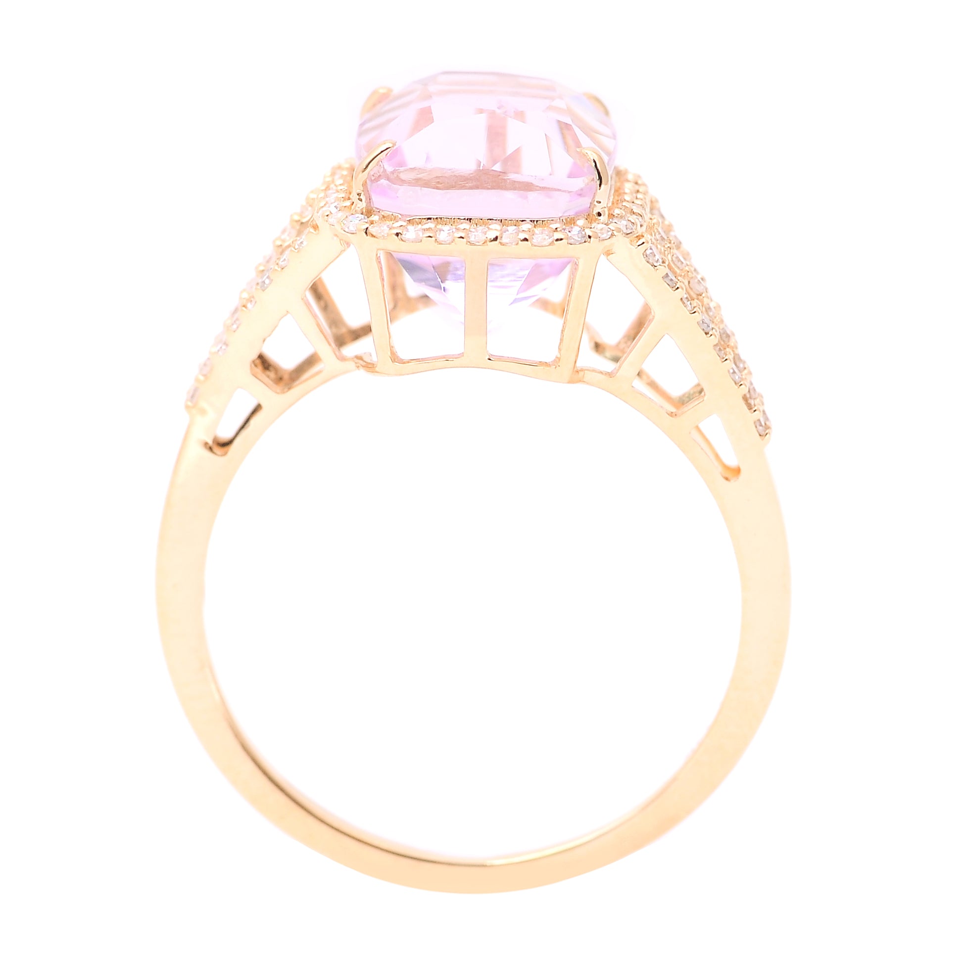 5.22 Ct Cushion Mixed Cut Natural Kunzite 14K Gold Ring