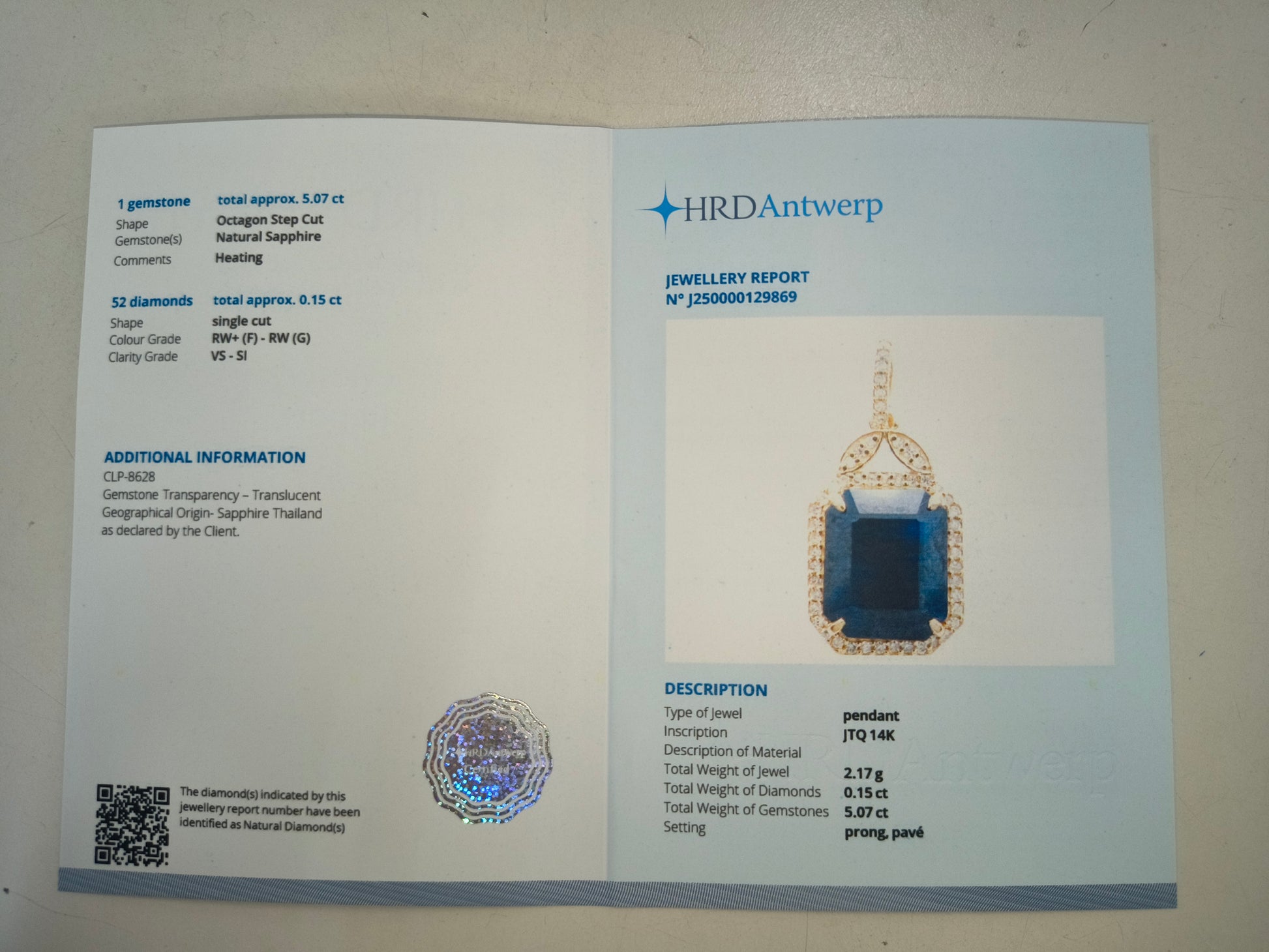 5.22 Ct Octagon Natural Sapphire 14K Gold Pendant
