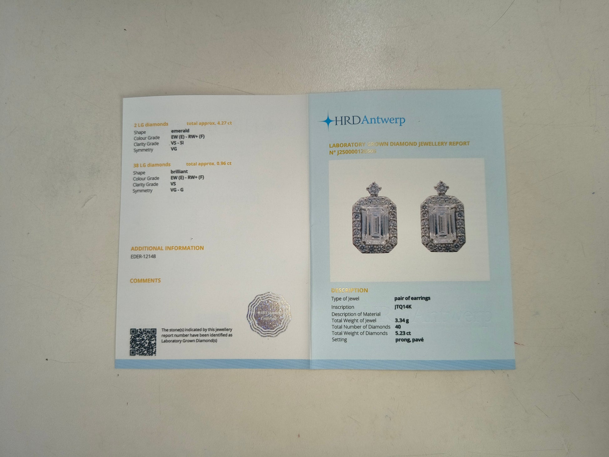 5.23-Carat Lab-Grown Diamond Octagon Brilliant Earrings - HRD Certified