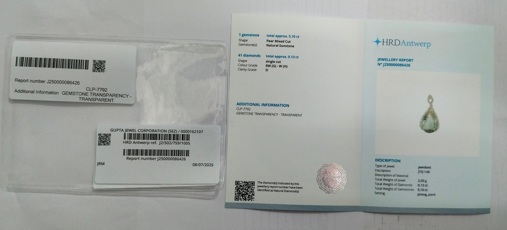5.23 Ct Pear Mixed Cut Natural Sunstone 14K Gold Pendant