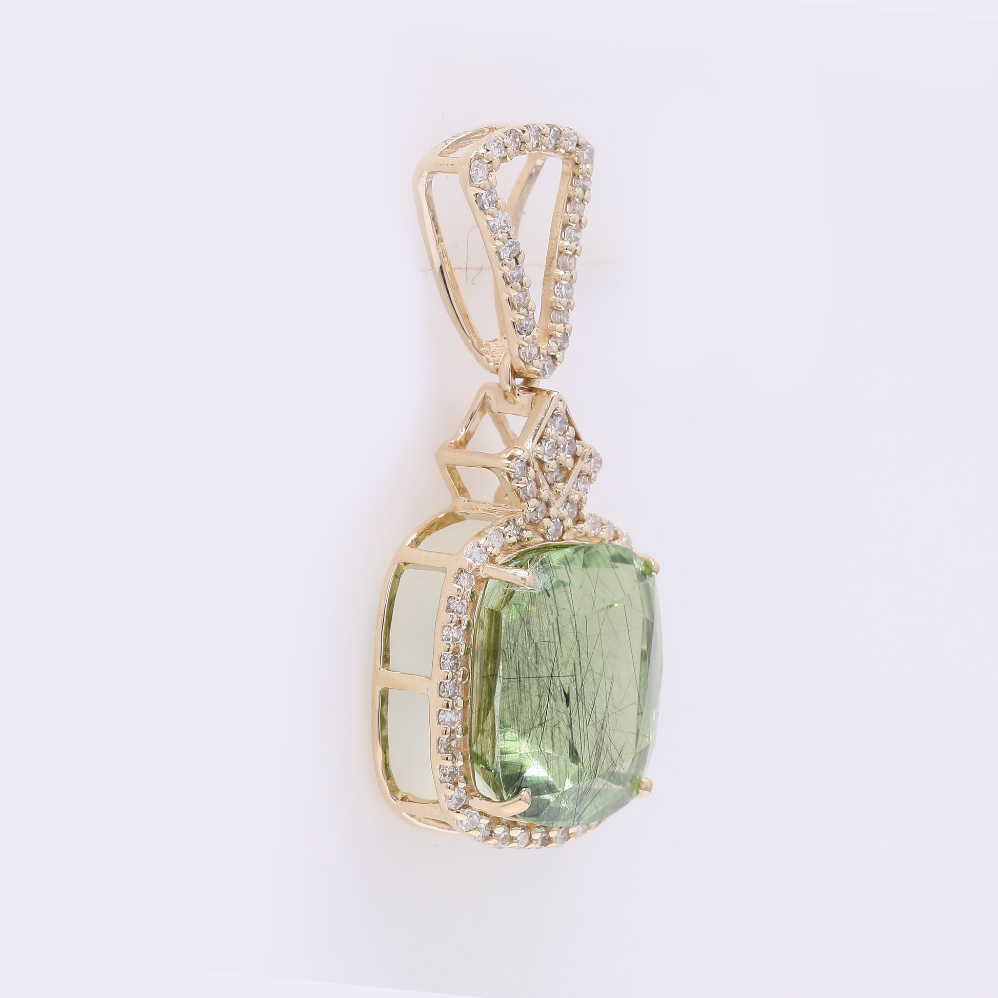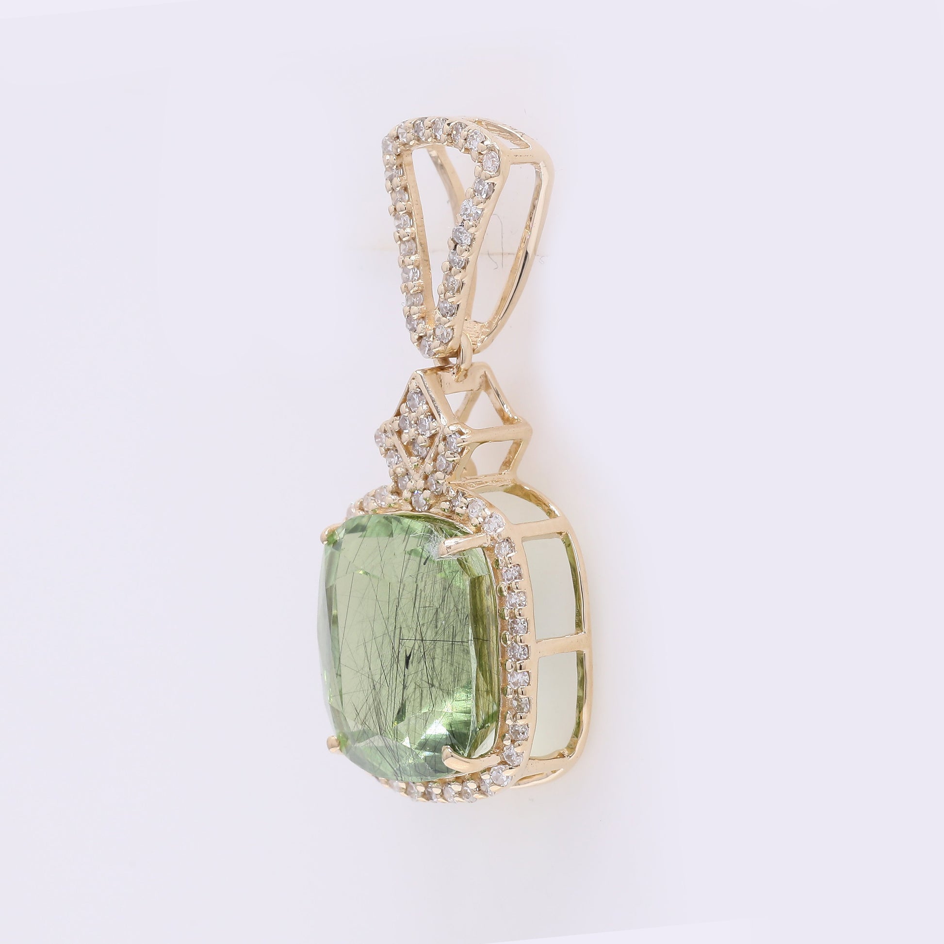 5.26 Ct Cushion Mixed Cut Natural Peridot 14K Gold Pendant