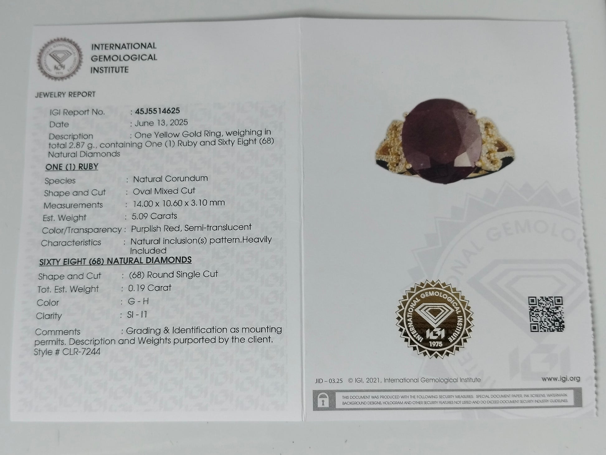 5.28 Ct Oval Mixed Cut Natural Corundum Ruby 14K Gold Ring