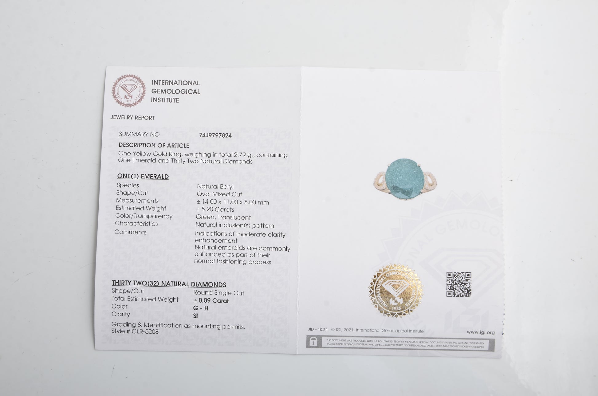 - Lab Name: International Gemological Institute (IGI)