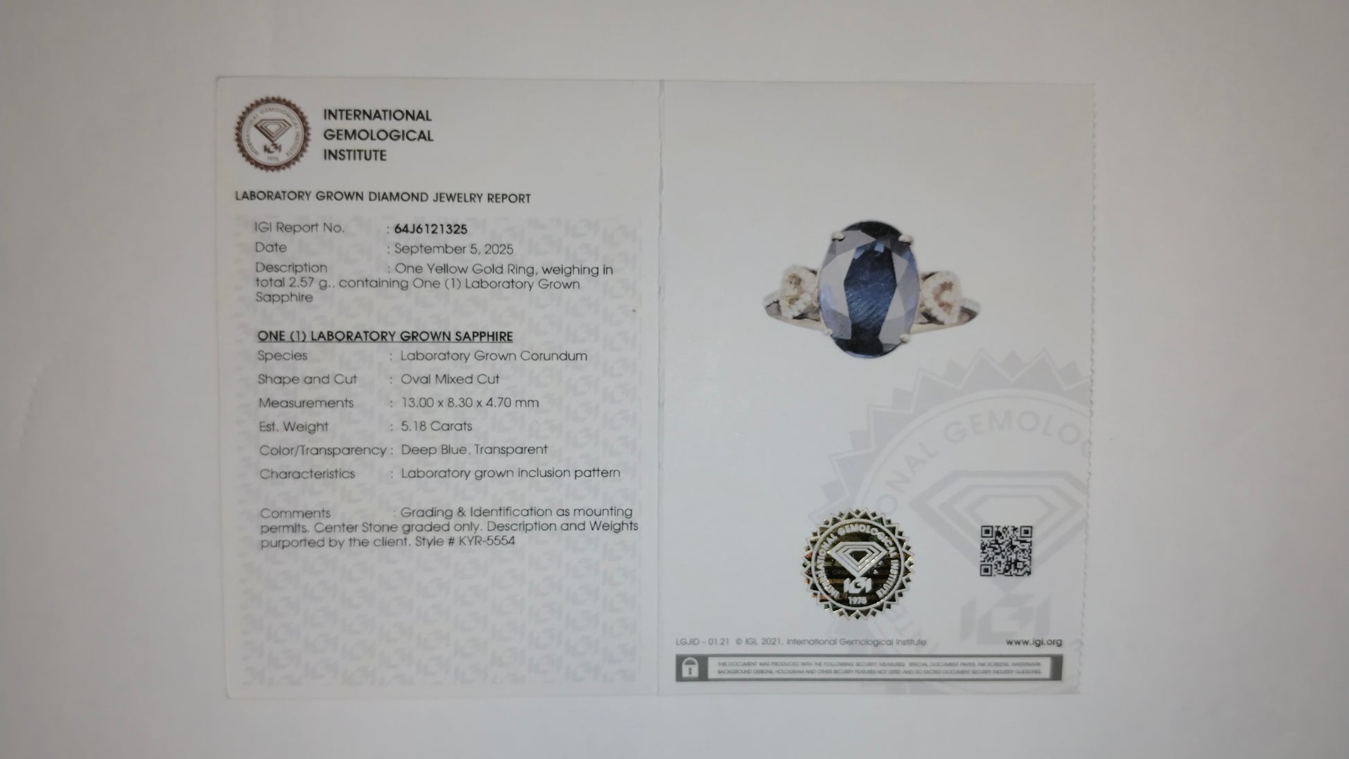 5.30 Total Carat Lab Grown Sapphire 14K Gold Ring