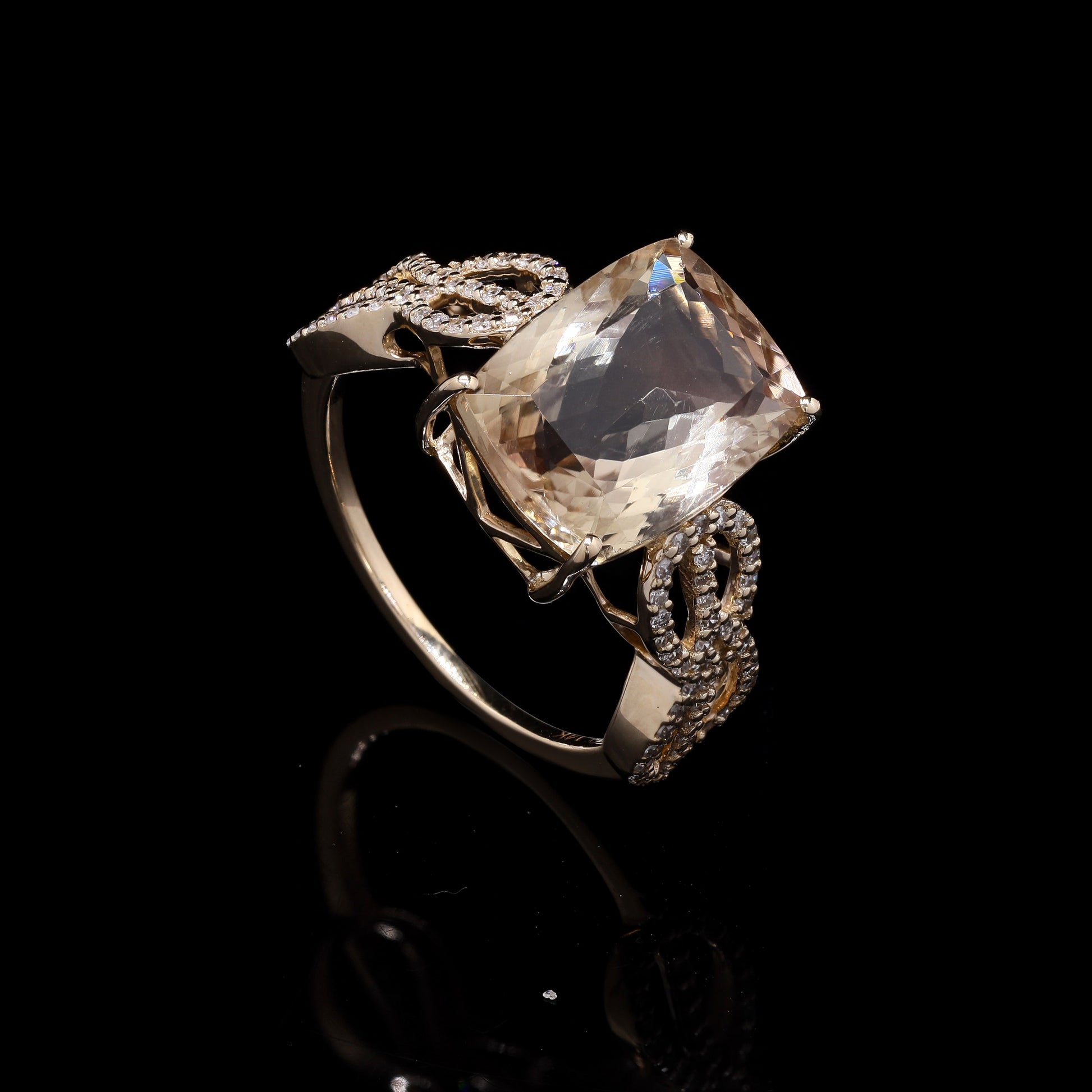 5.36 Ct Rectangular Cushion Mixed Cut Natural Plagioclase Feldspar Sunstone 14K Gold Ring