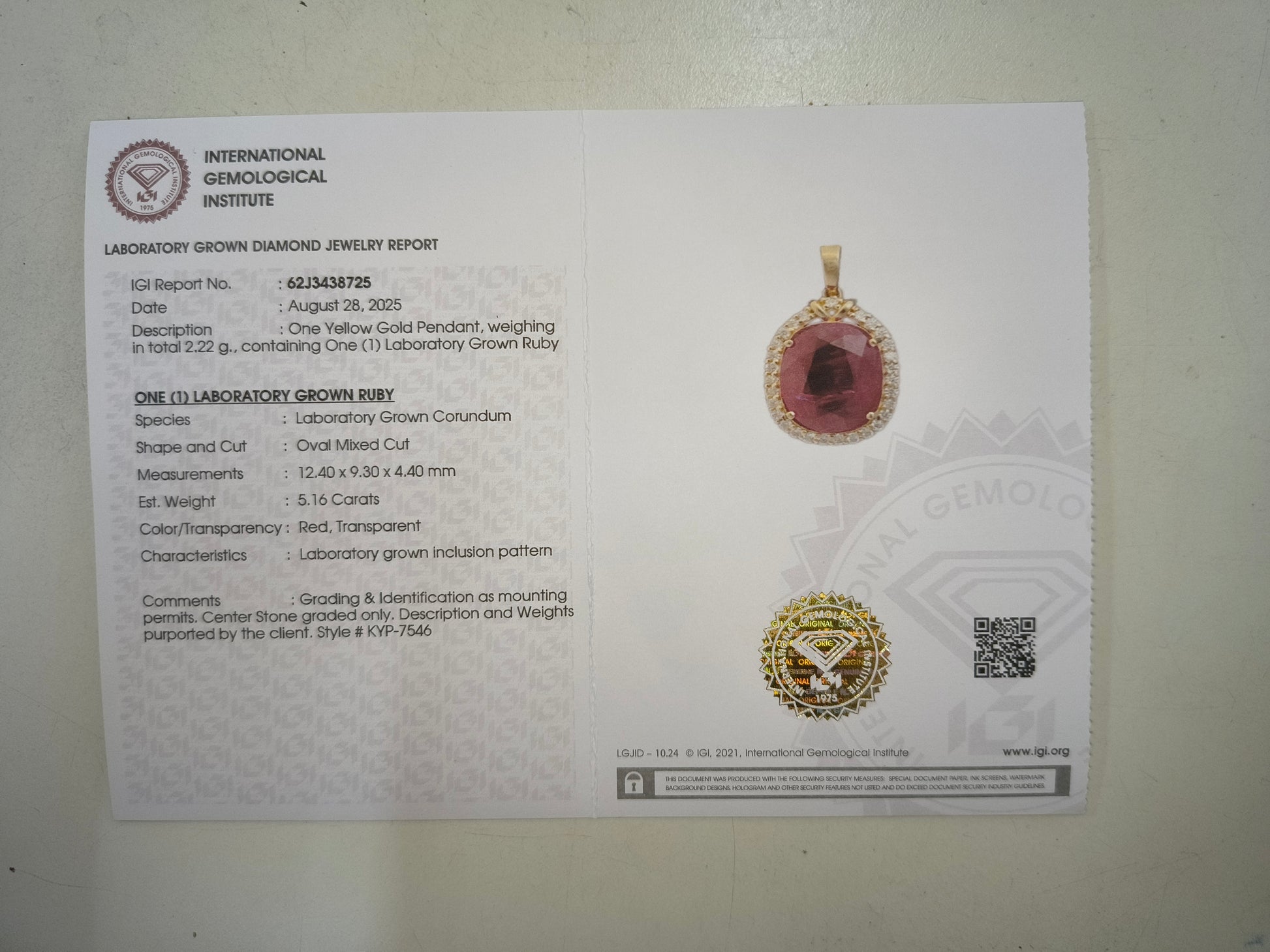 - Lab Name: International Gemological Institute (IGI)