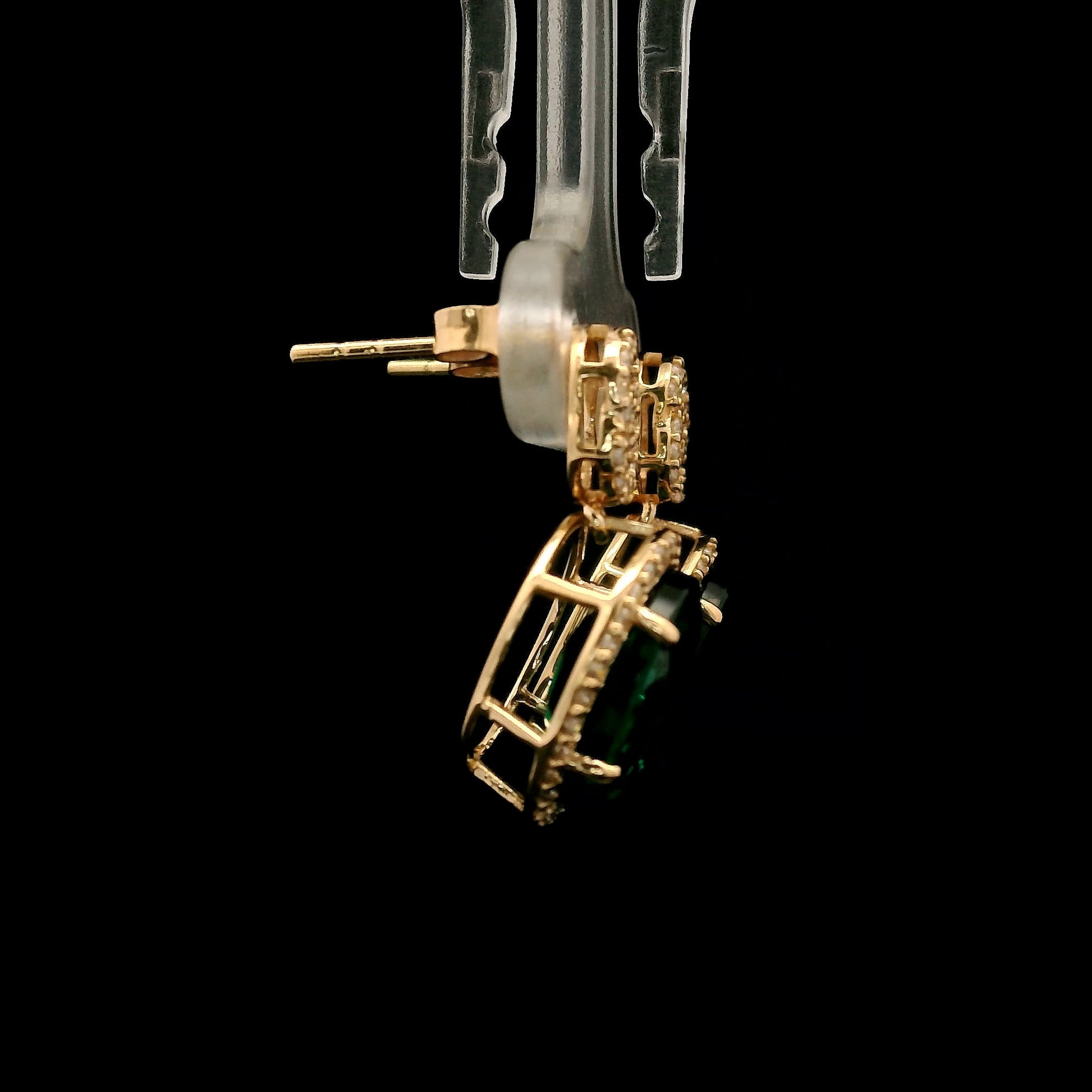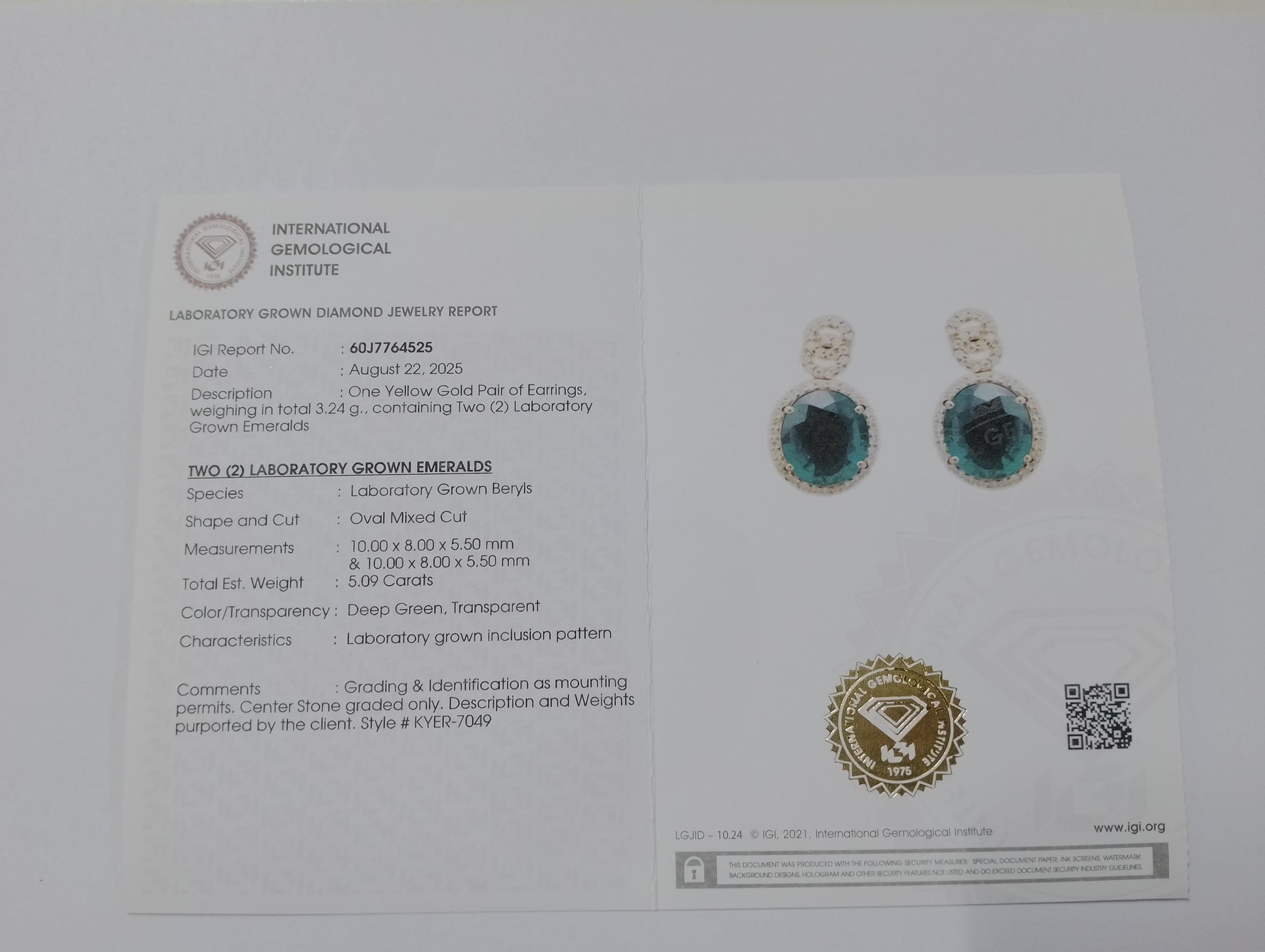 5.41 Ct Oval Mixed Cut Lab Grown Emerald 14K Gold Earrings