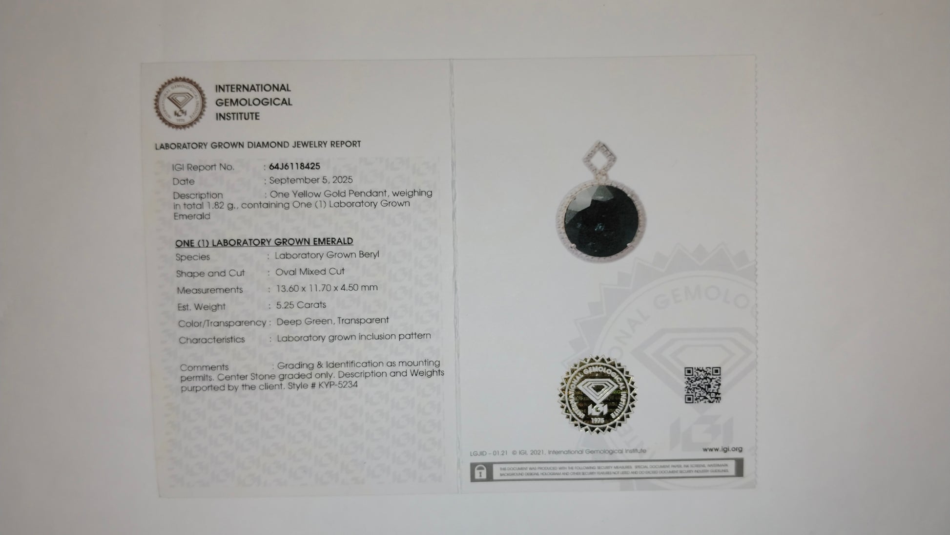 5.42 Total Carat Lab Grown Emerald 14K Gold Pendant