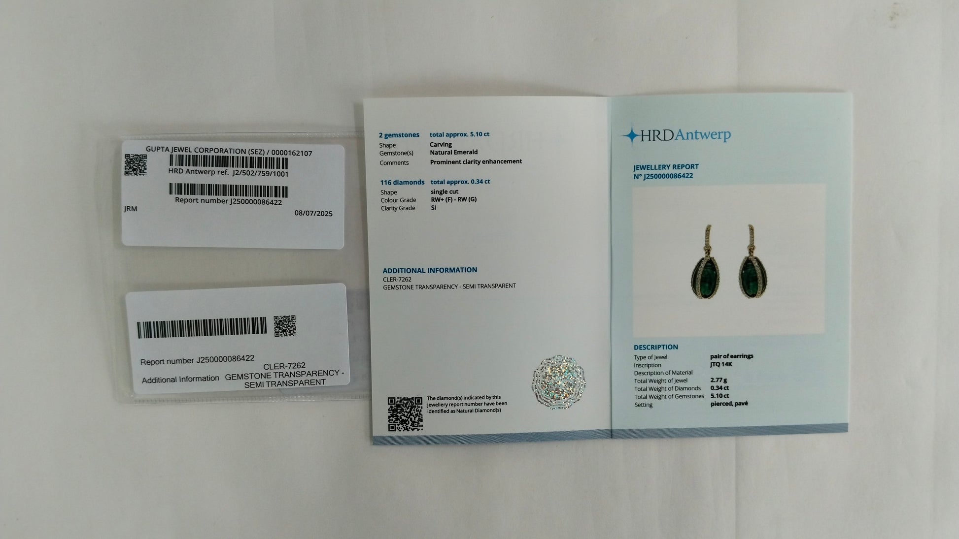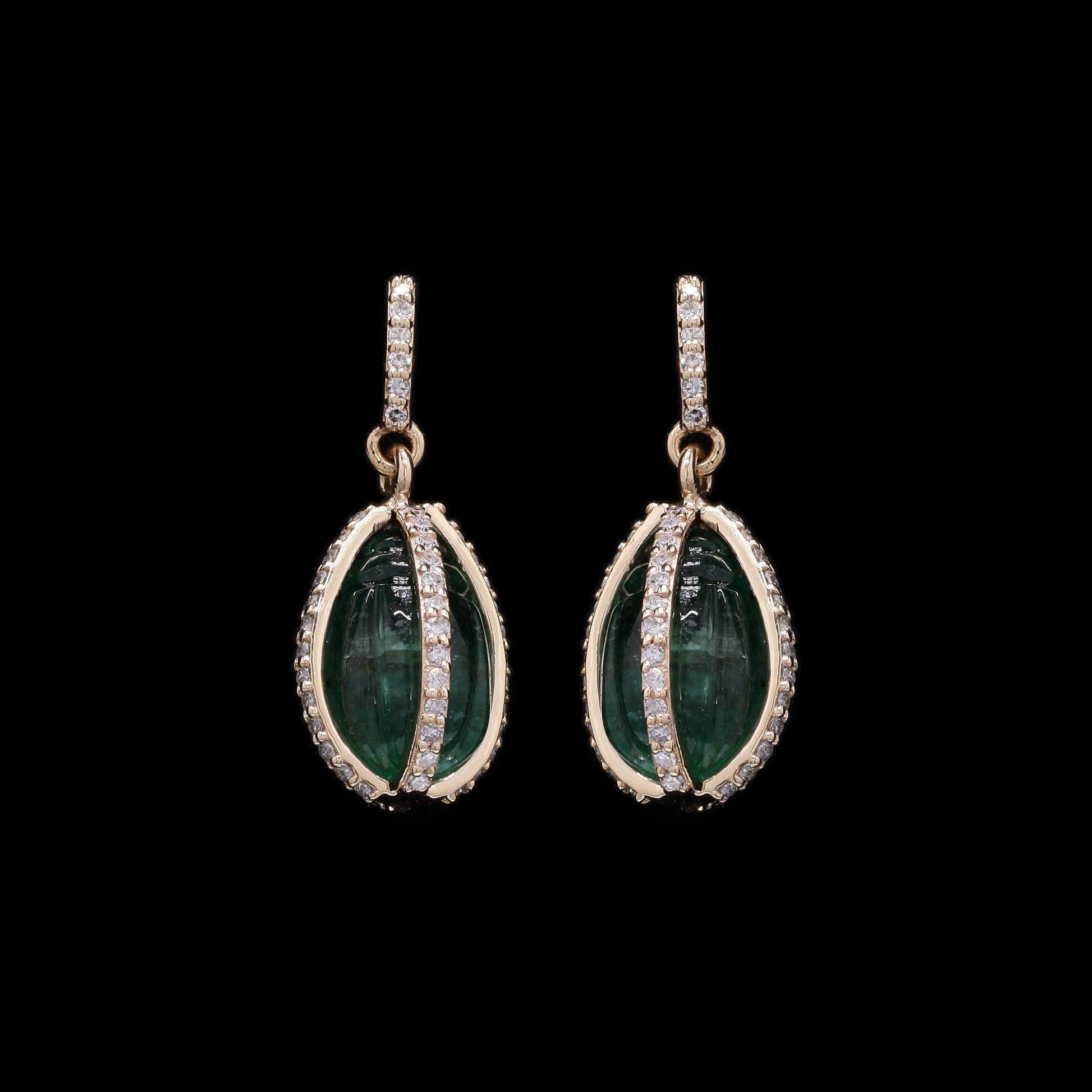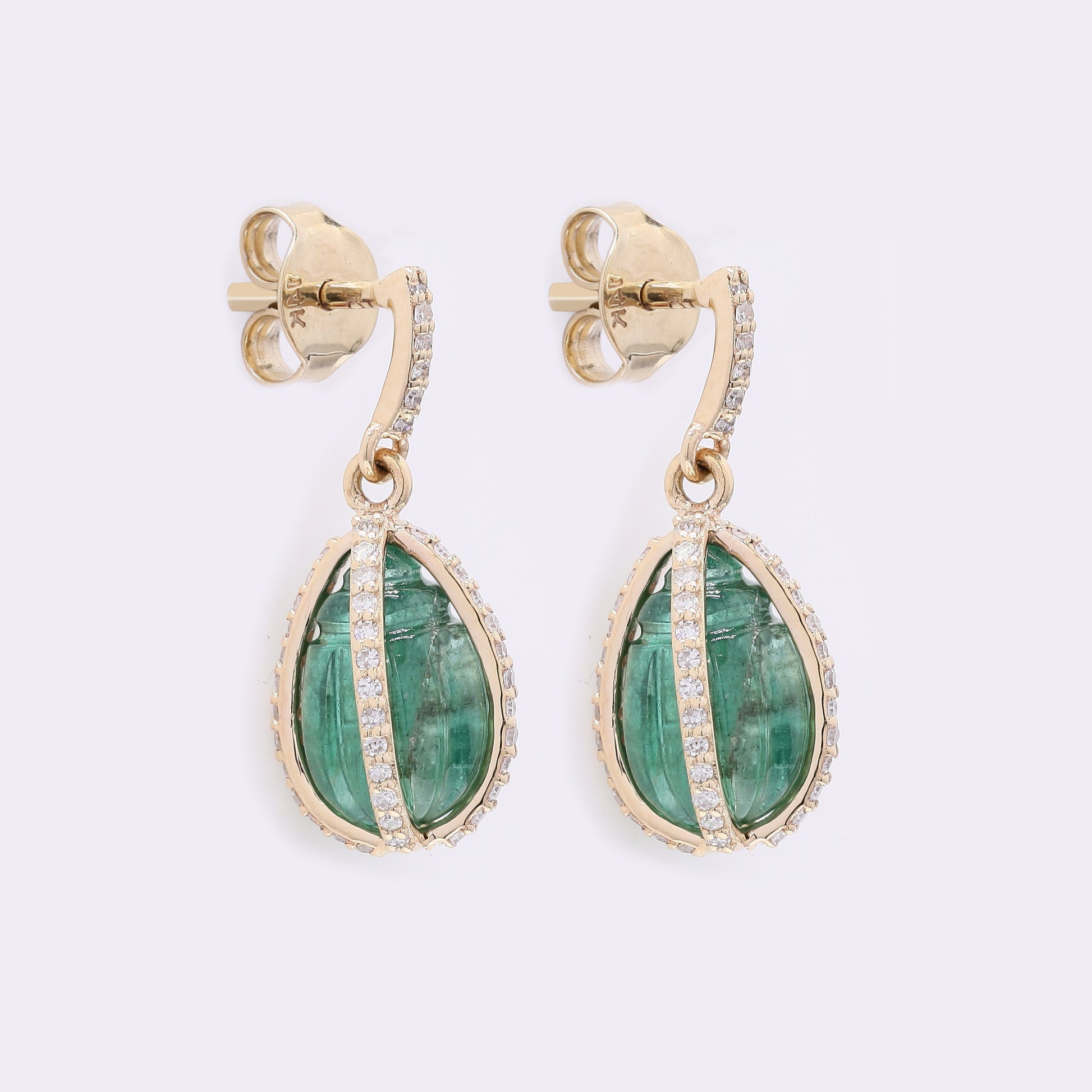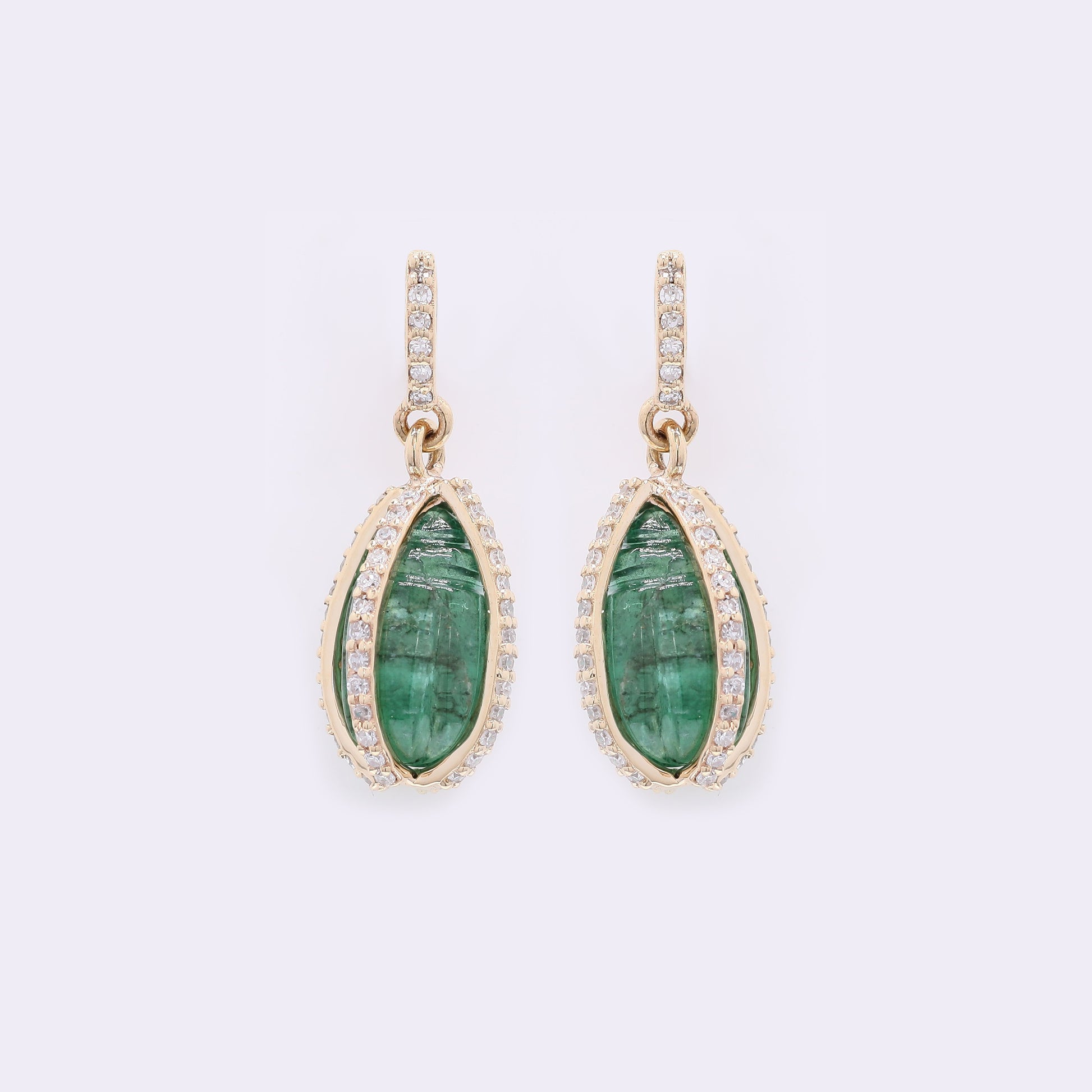 5.44 Ct Drop Carving Natural Emerald 14K Gold Earrings