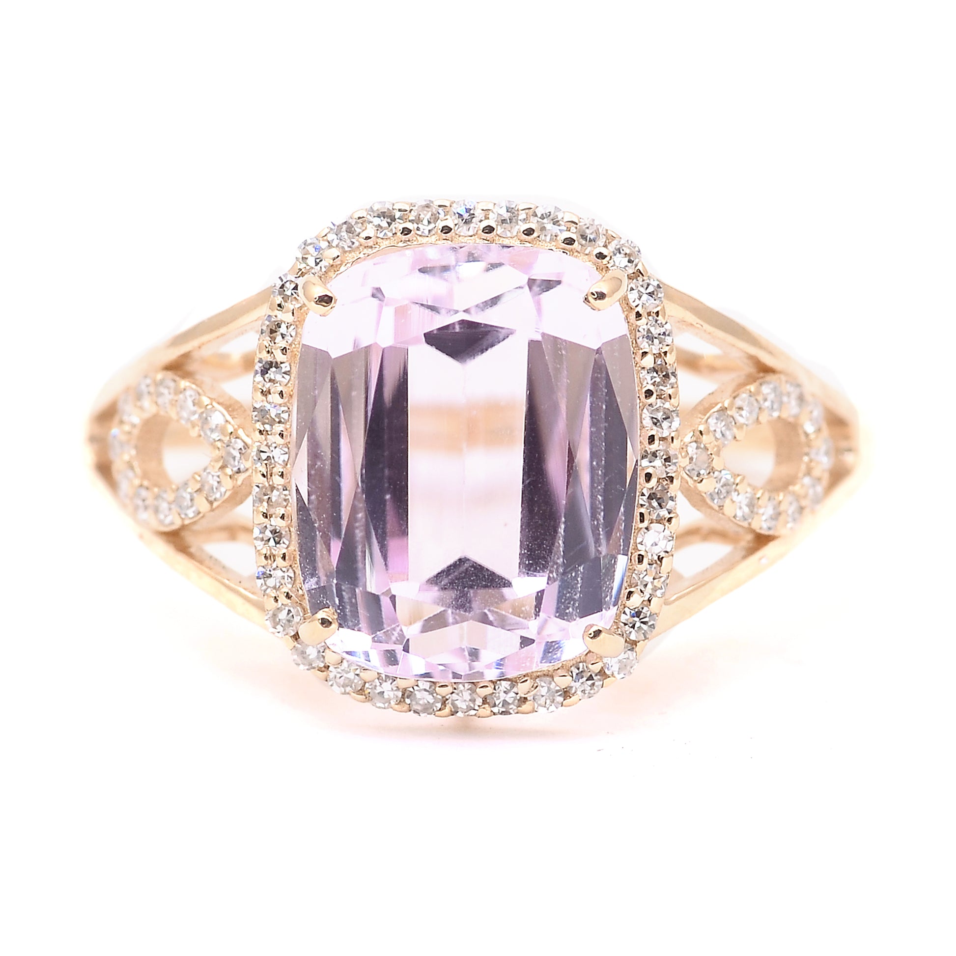 5.47 Ct Cushion Mixed Cut Natural Kunzite 14K Gold Ring