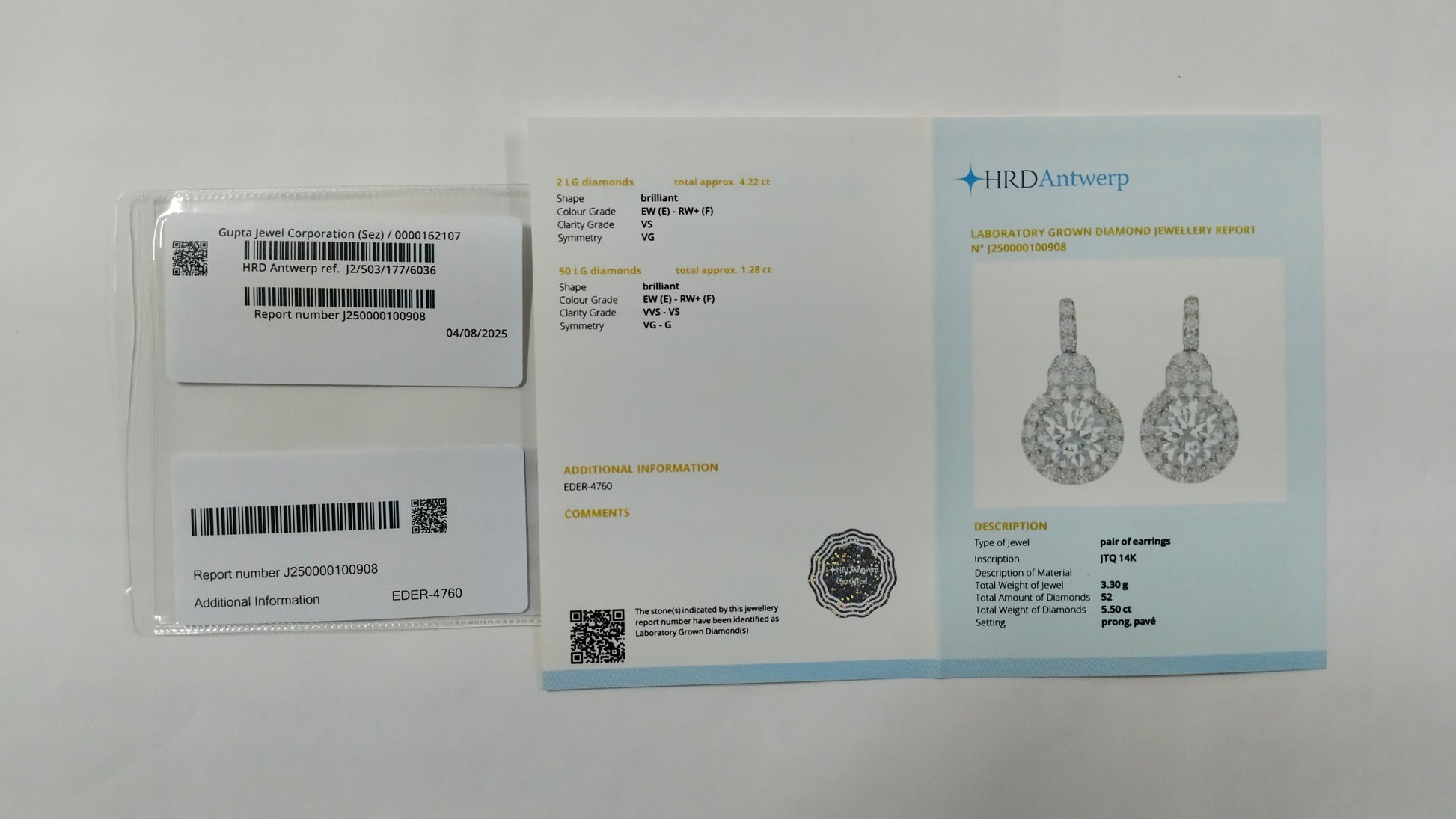 5.50-Carat Lab-Grown Diamond Round Cut Brilliant Earrings ? HRD Certified
