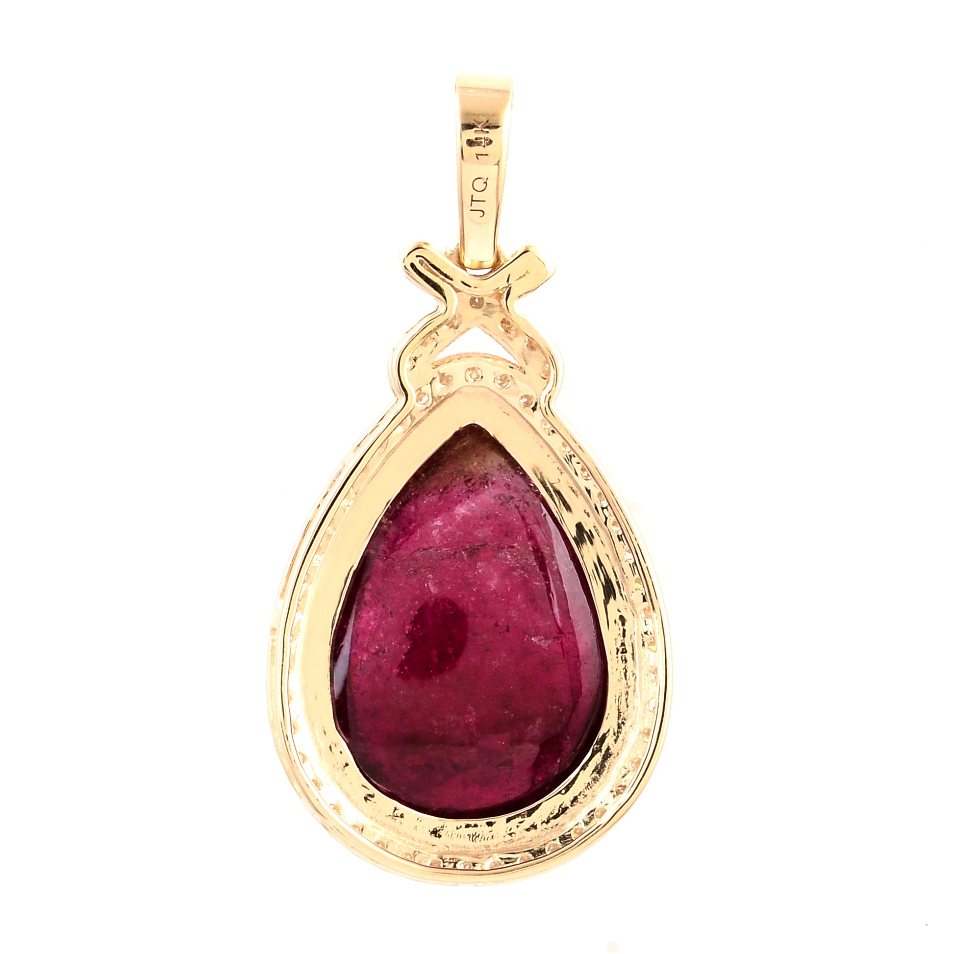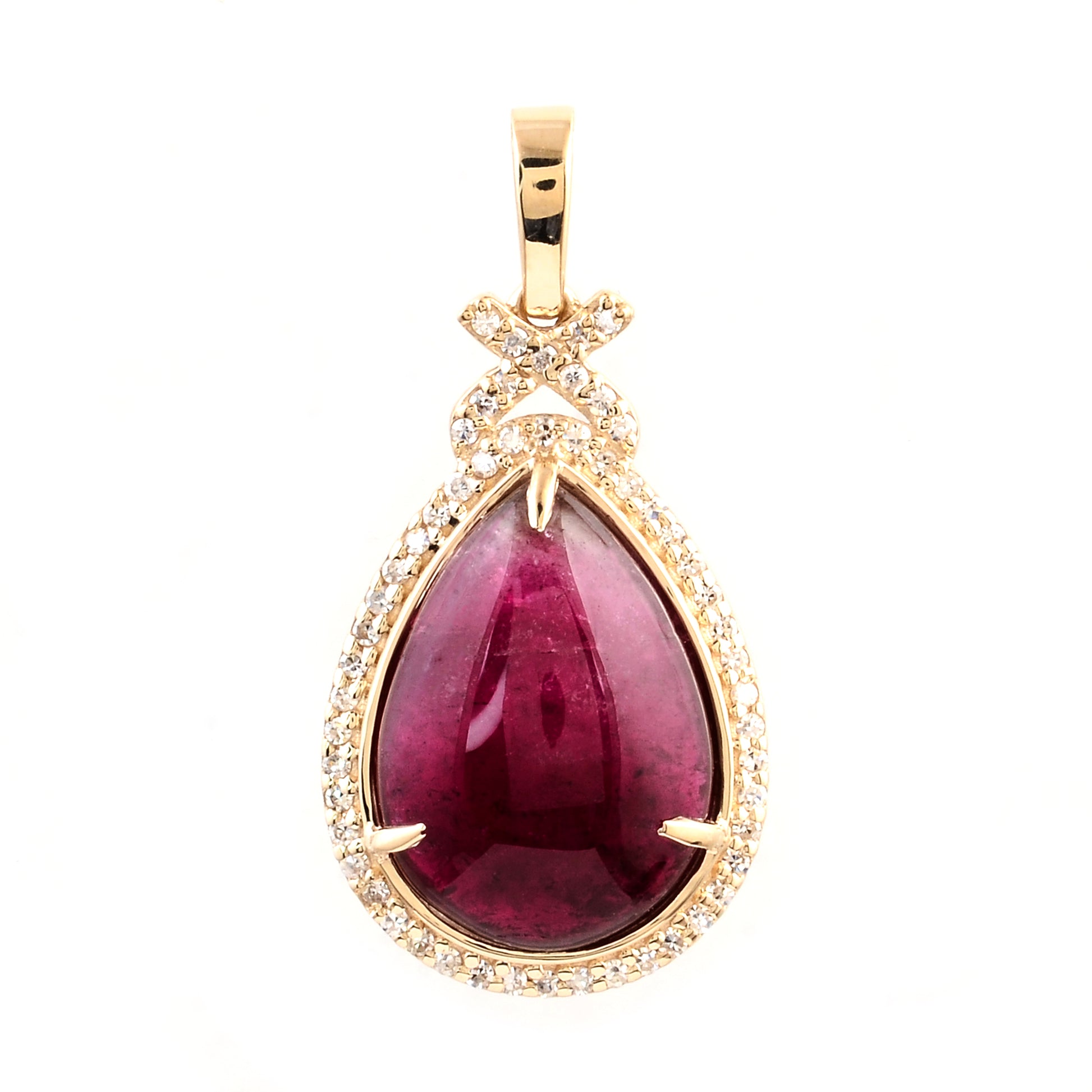 5.55 Ct Pear Cabochon Natural Tourmaline 14K Gold Pendant