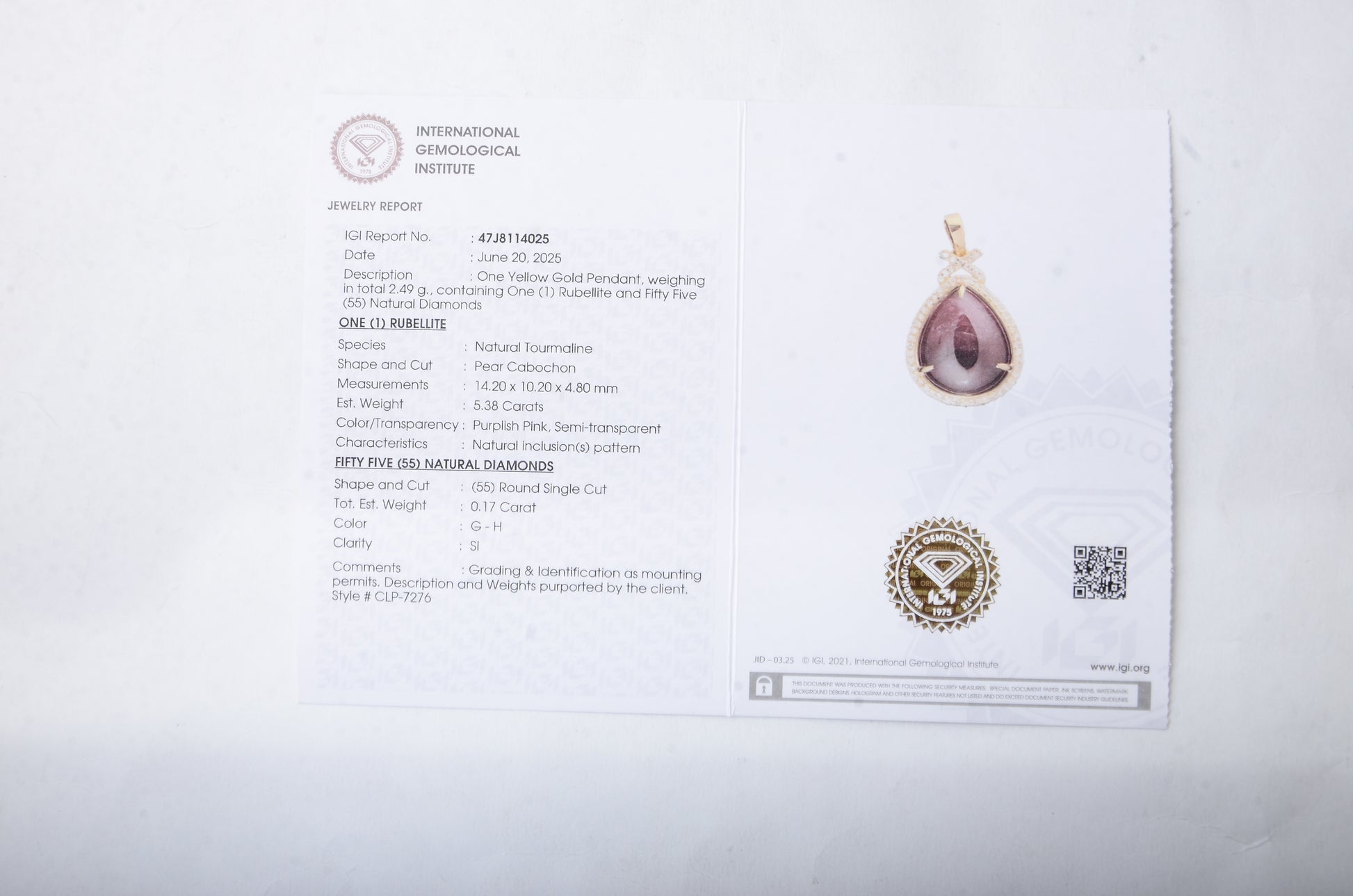5.55 Total Carat Natural Tourmaline 14K Gold Pendant