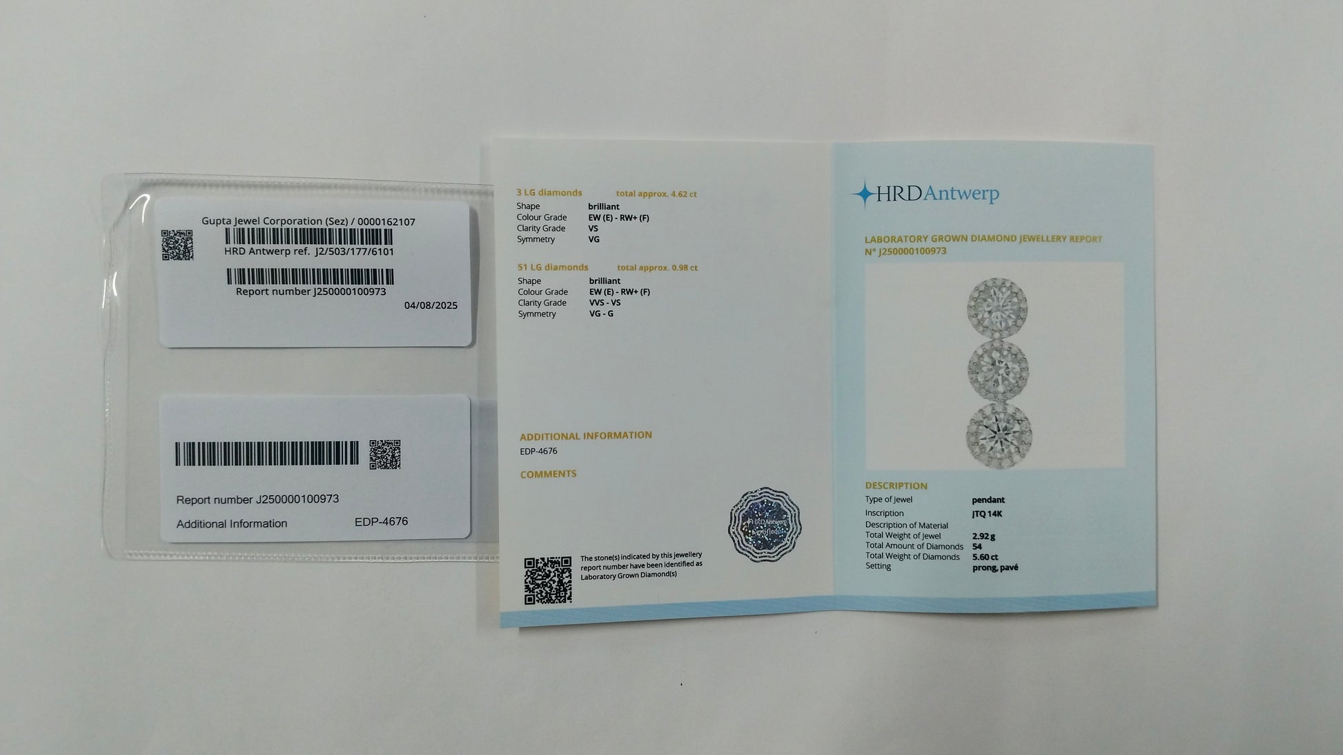 5.60-Carat Lab-Grown Diamond Round Cut Brilliant Pendant ? HRD Certified