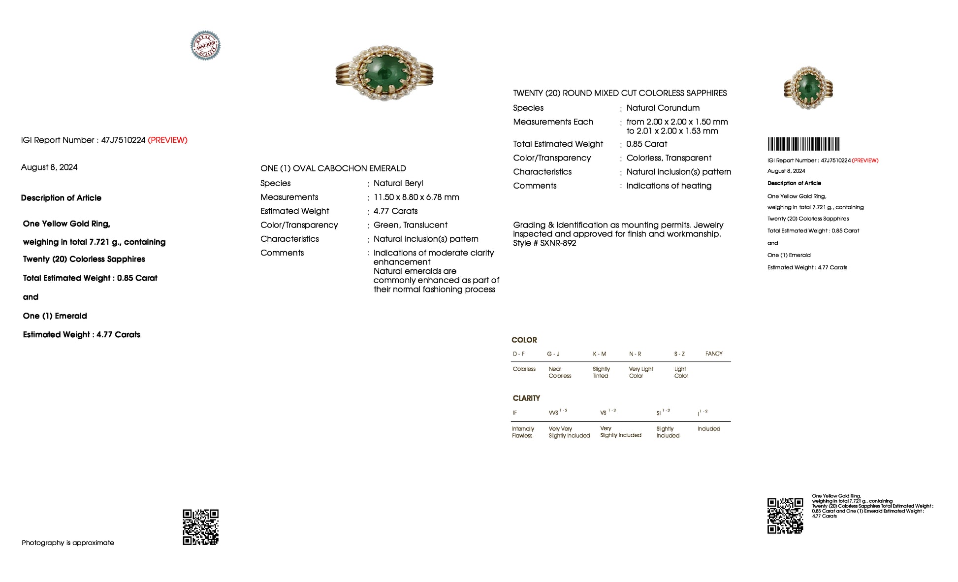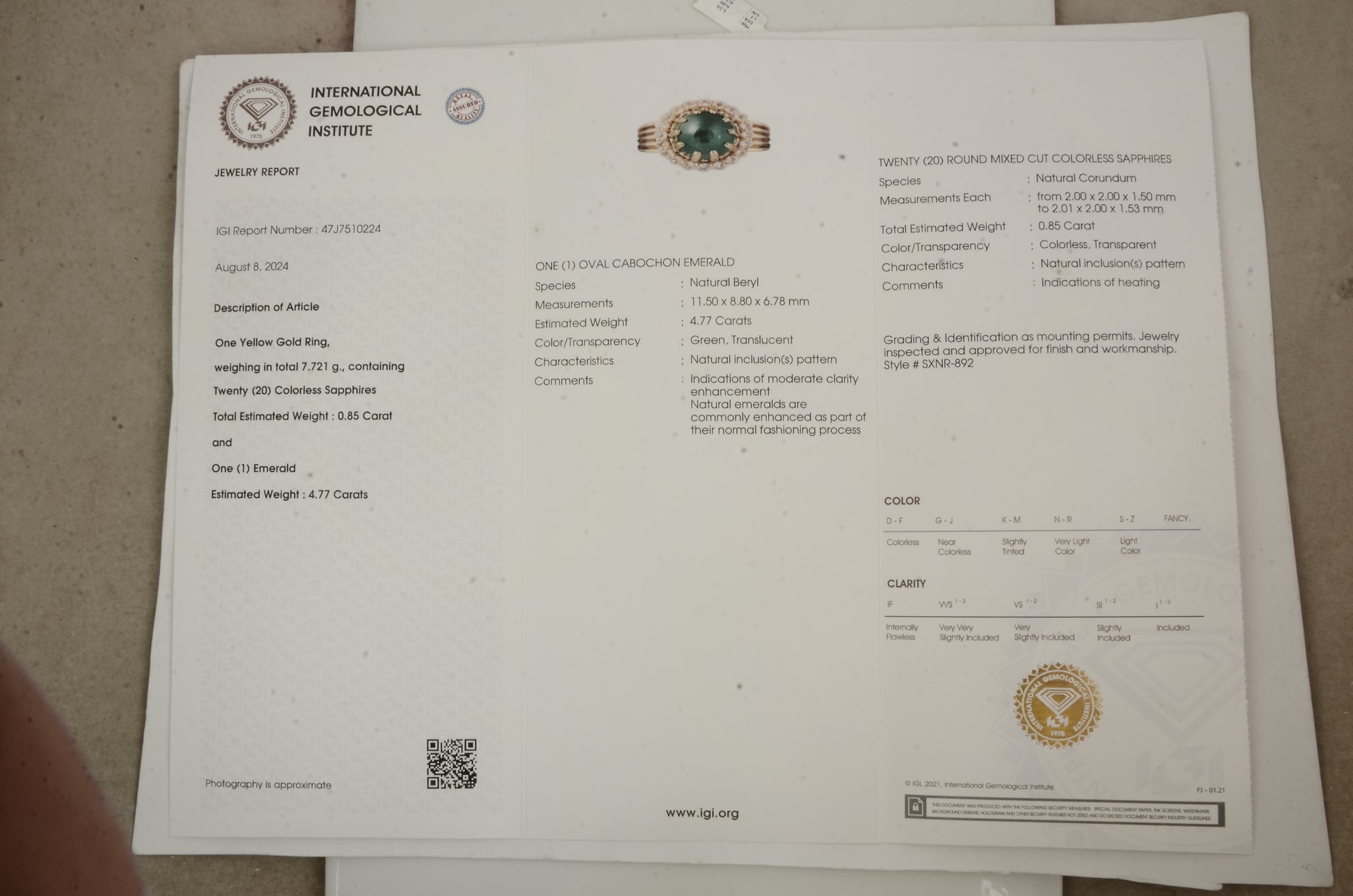 - Lab Name: International Gemological Institute (IGI)