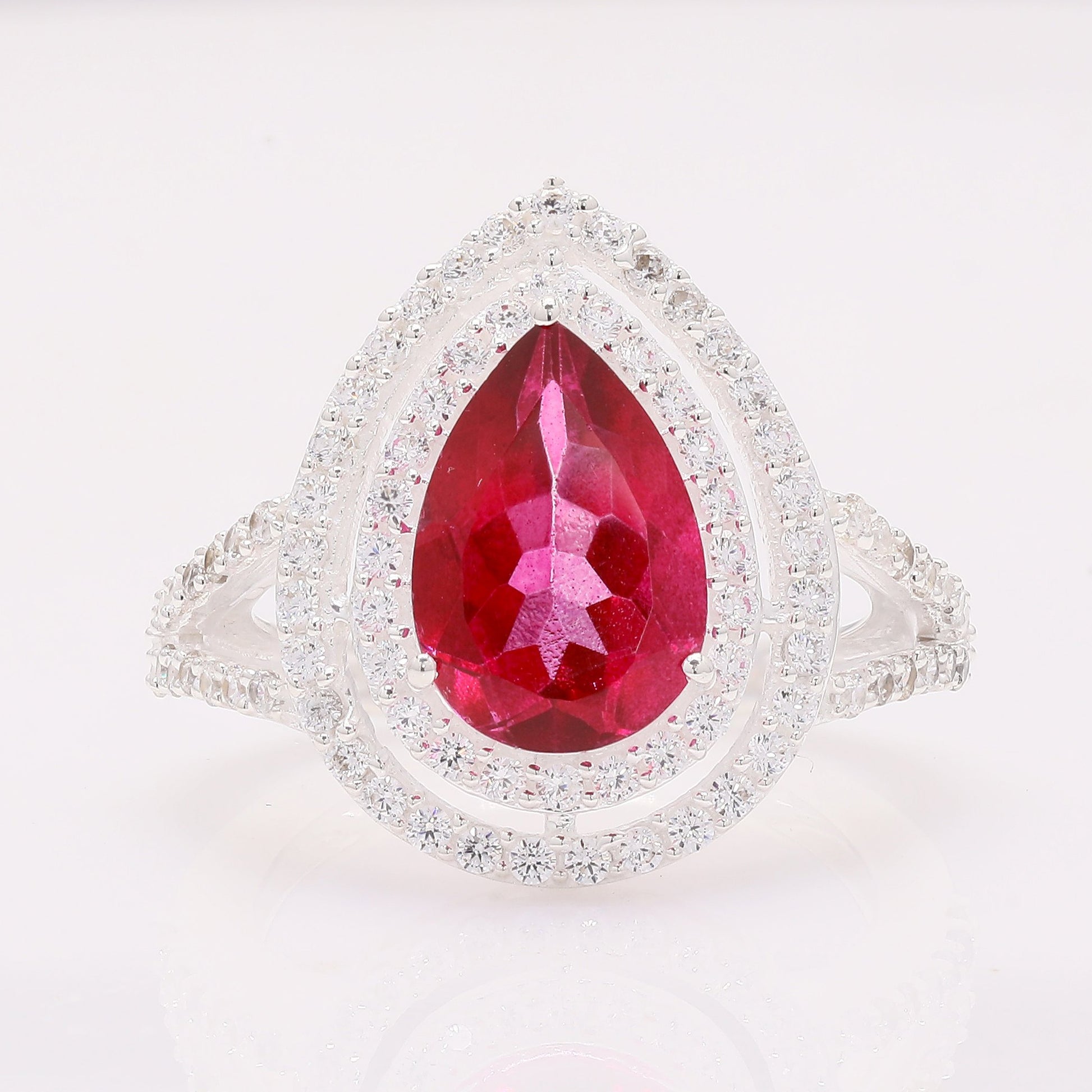 5.62 Ct Pear Pink Topaz 925 Silver Ring