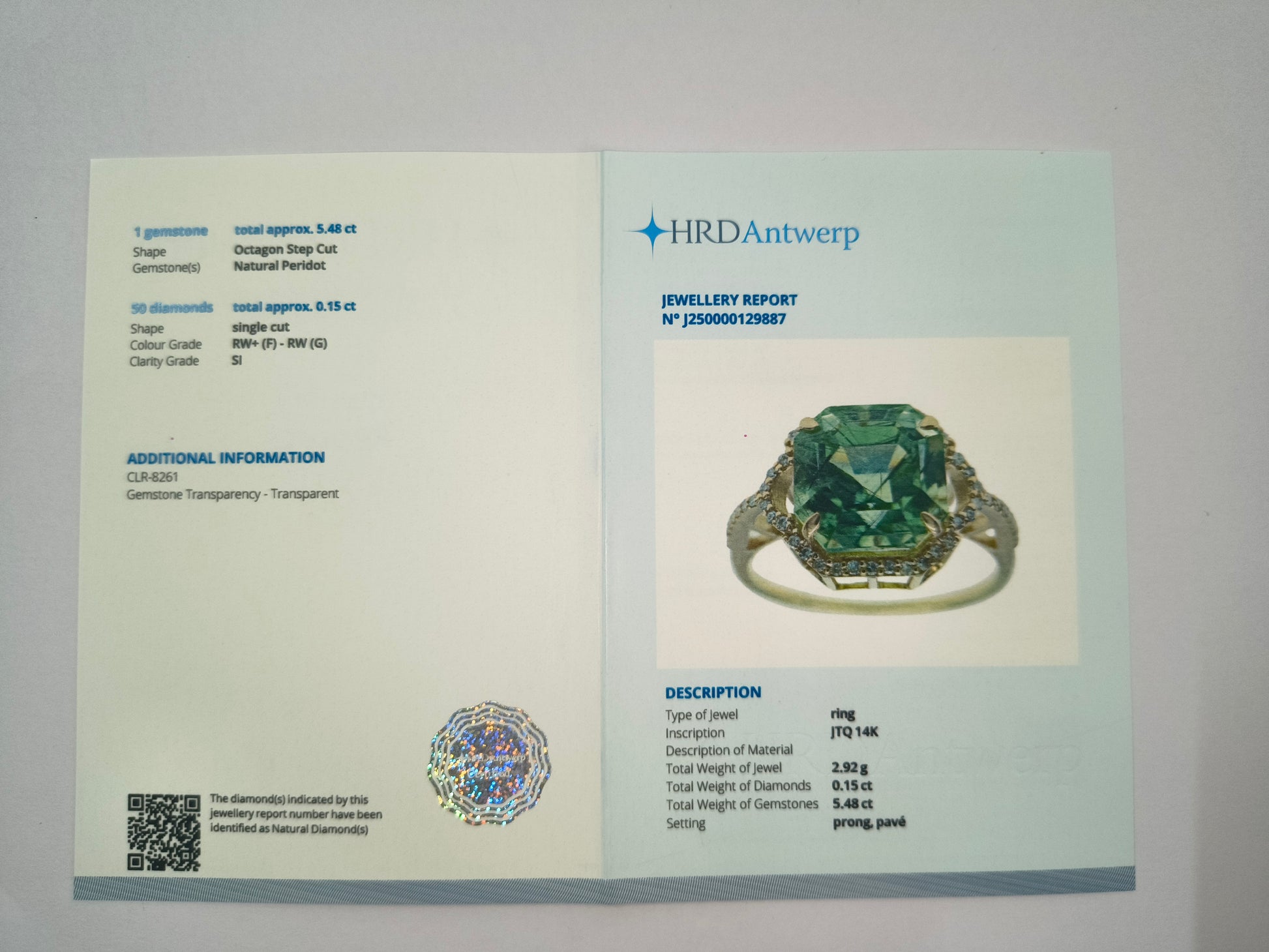 5.63 Ct Octagon Natural Eridot 14K Gold Ring
