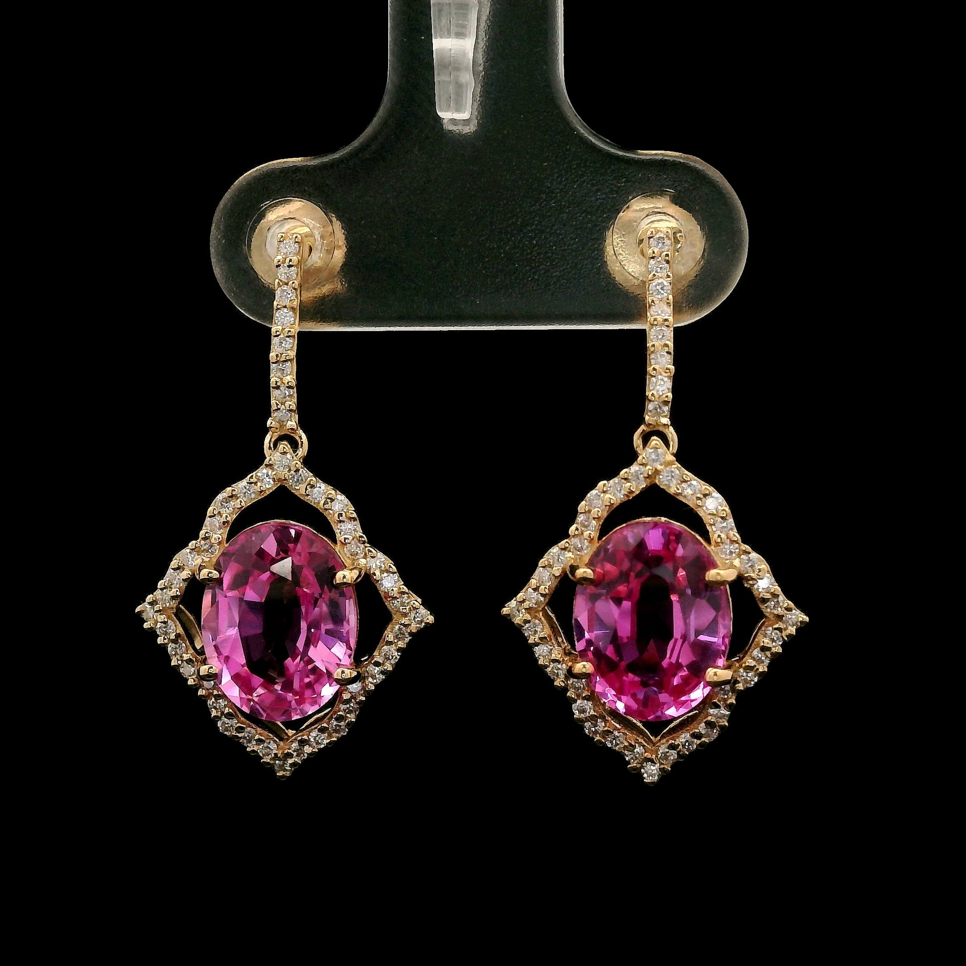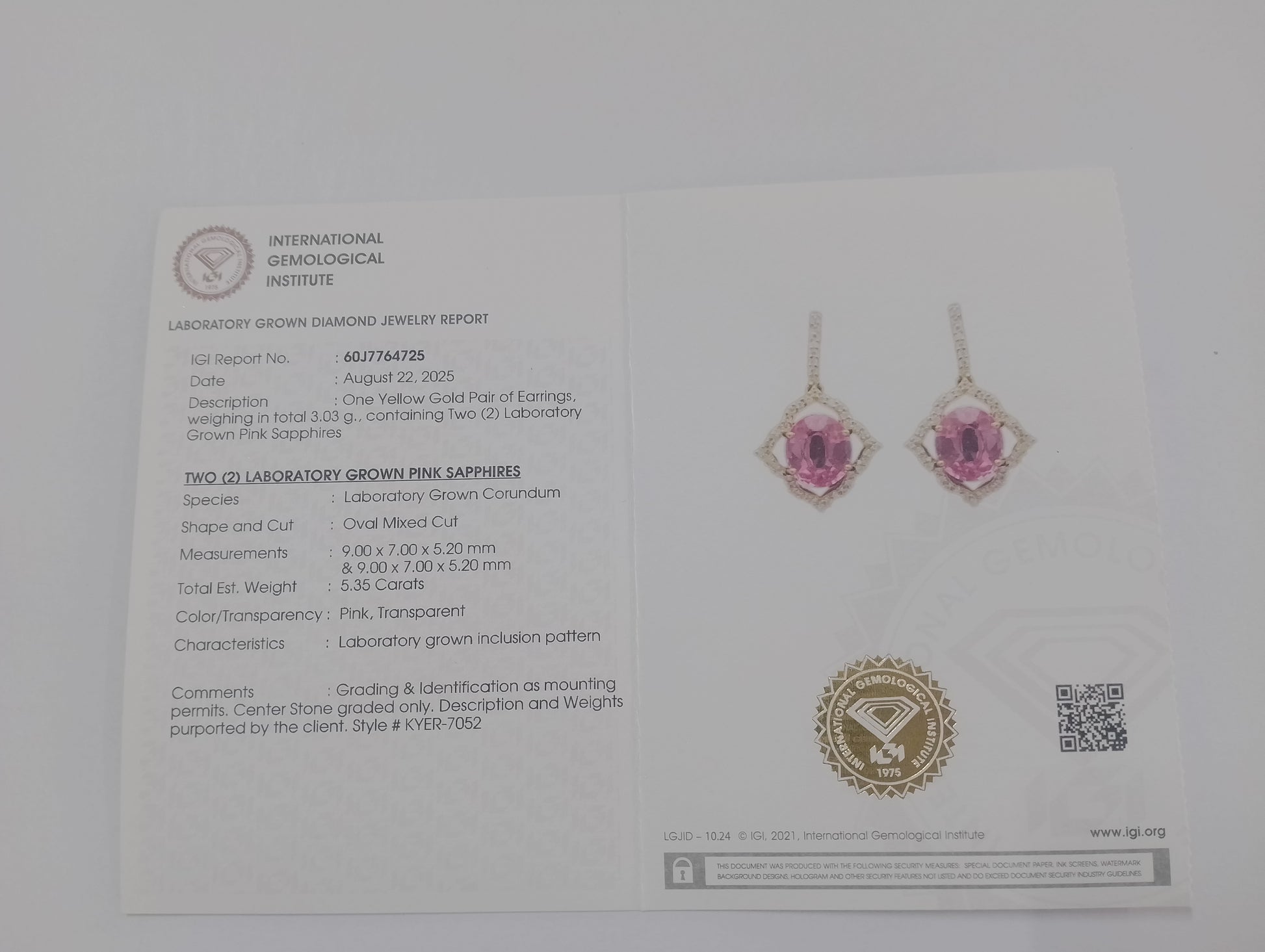 5.64 Total Carat Lab Grown Pink Sapphire 14K Gold Earrings