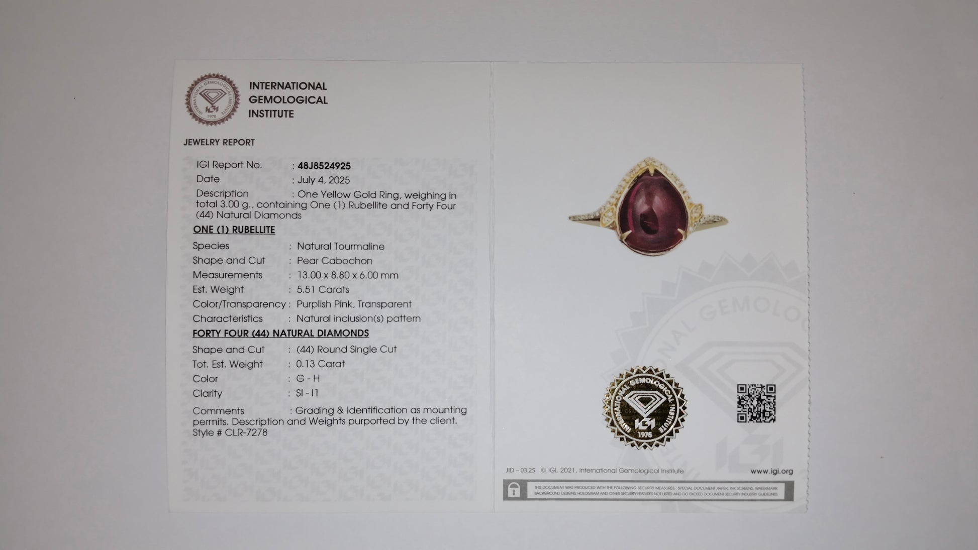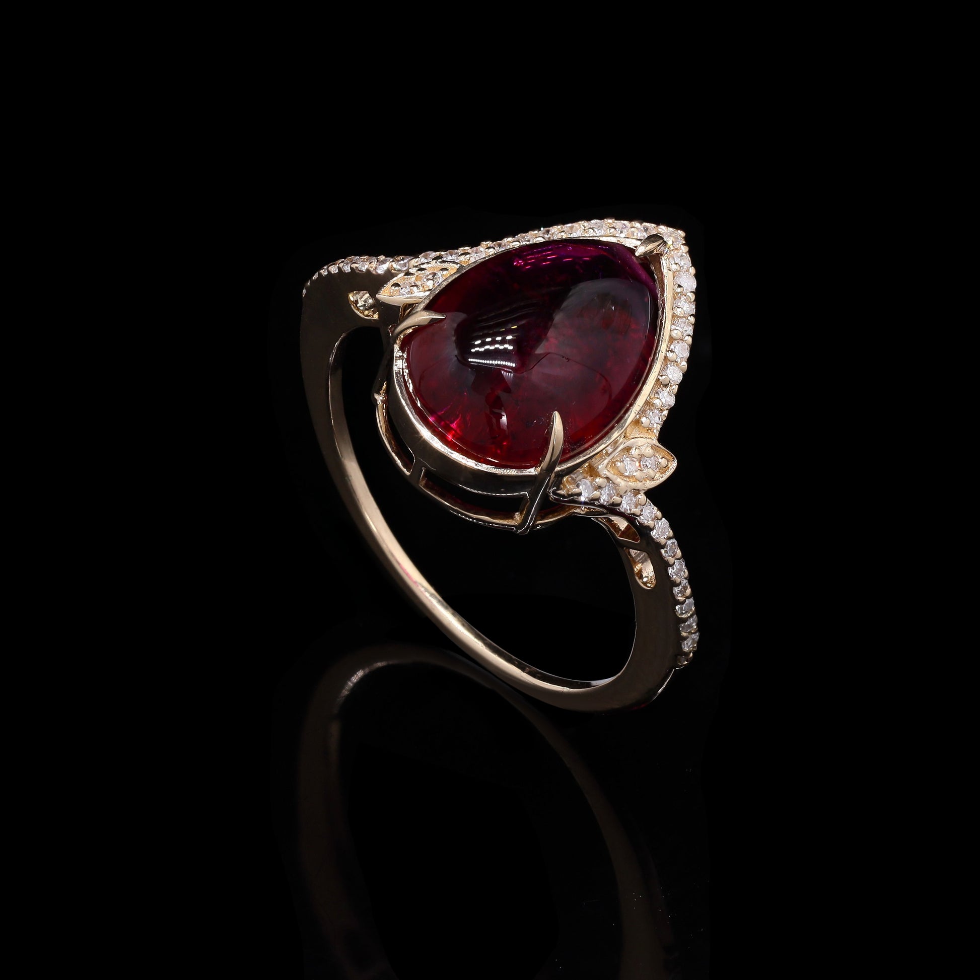 5.64 Ct Pear Cabochon Natural Tourmaline 14K Gold Ring