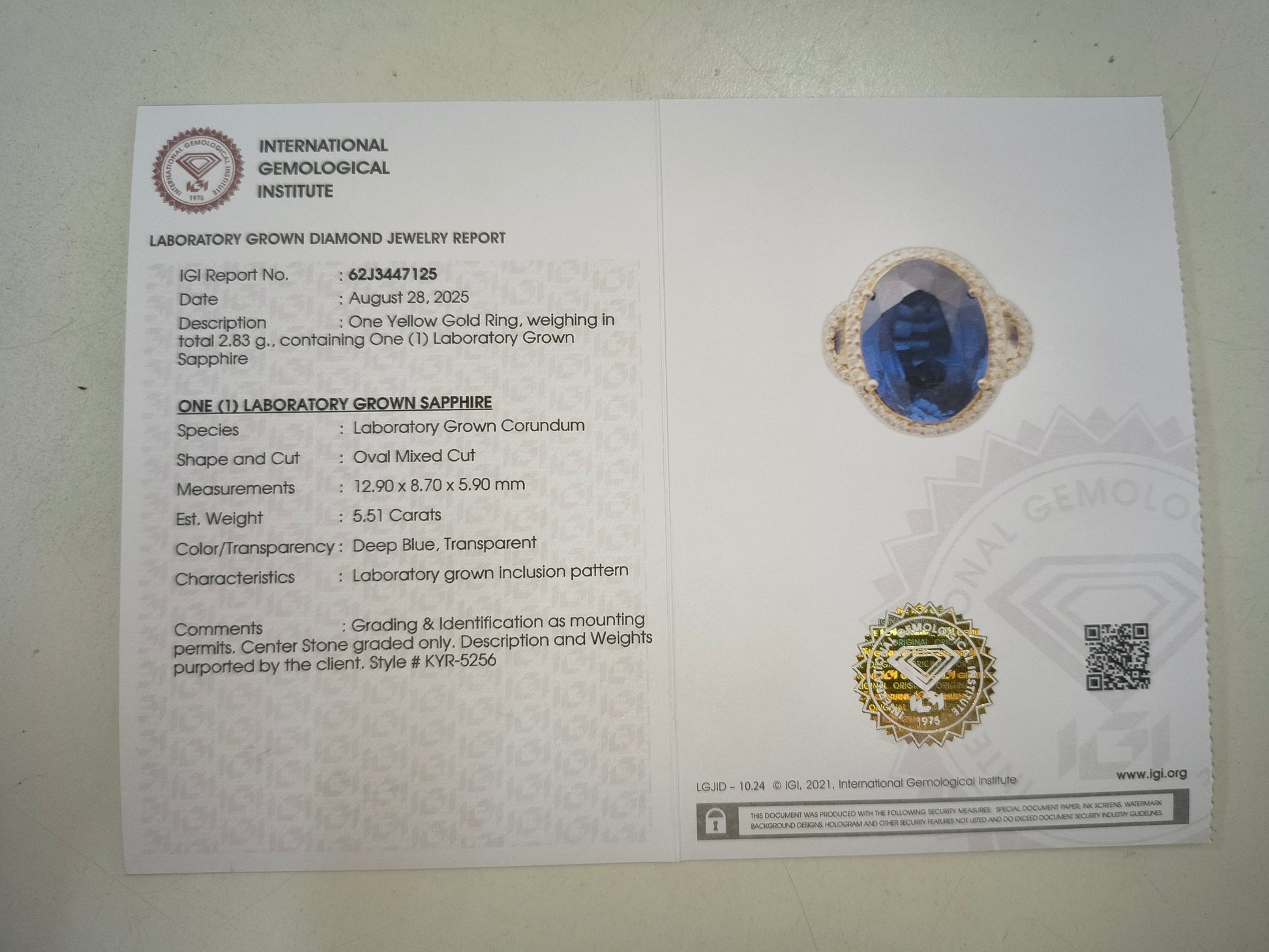 - Lab Name: International Gemological Institute (IGI)