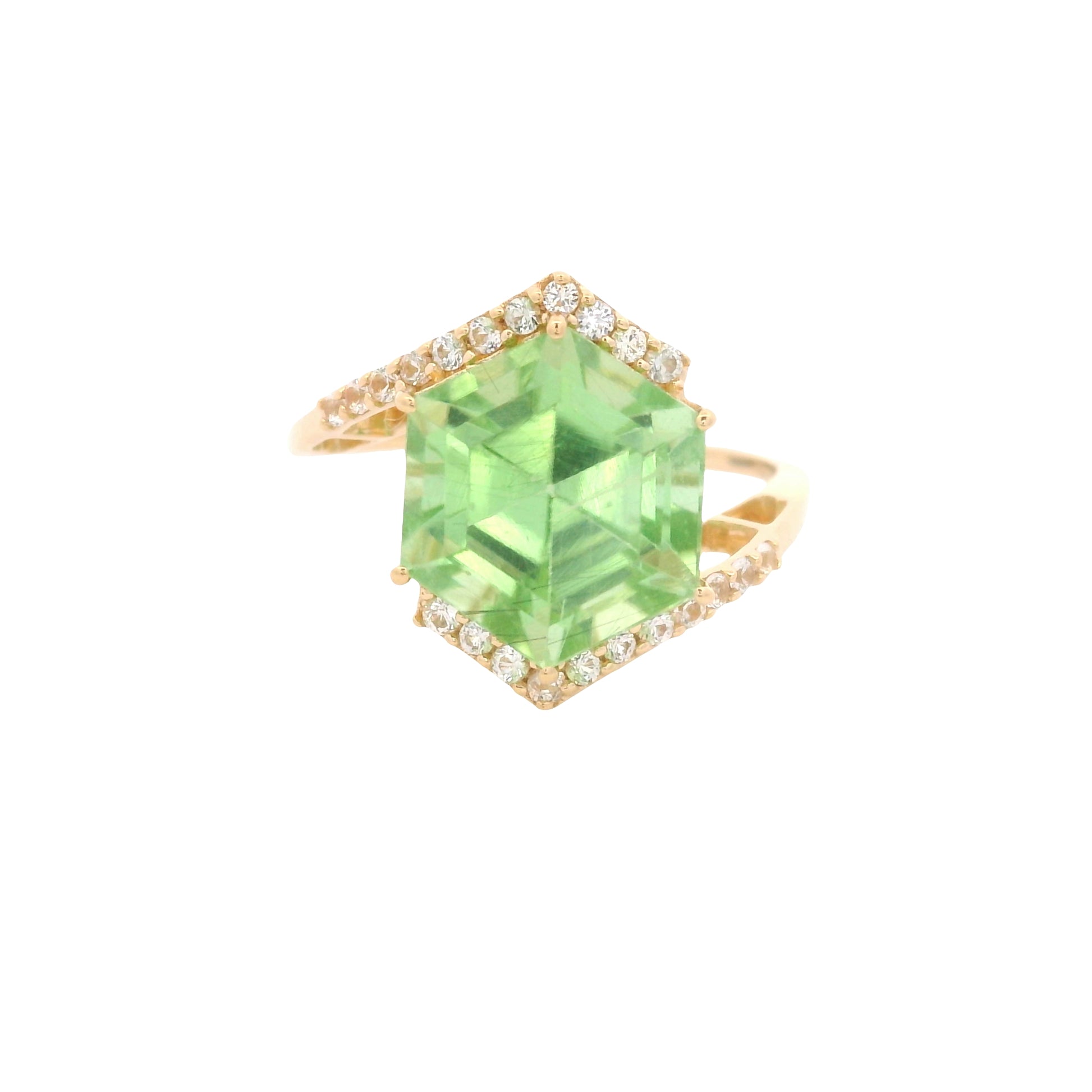 5.69 Ct Hexagon Peridot 14K Gold Ring