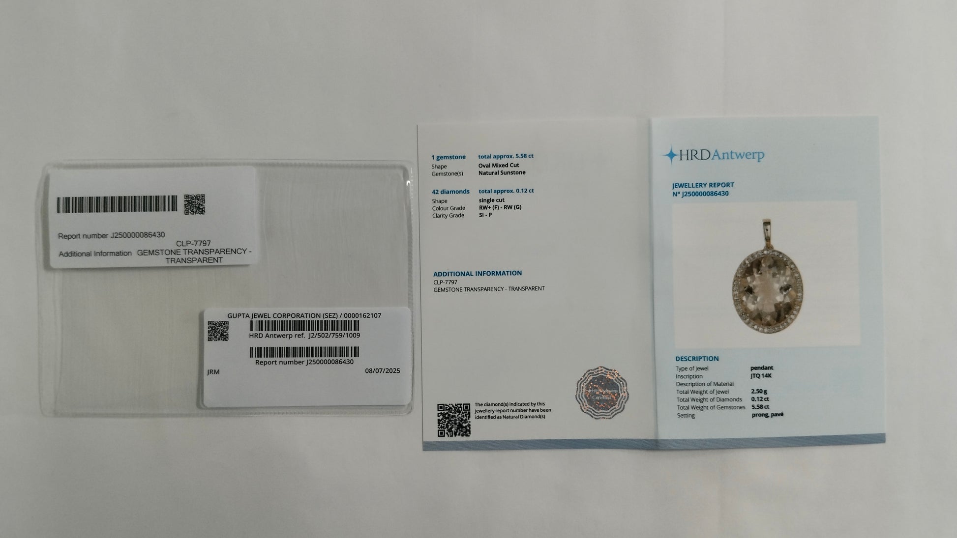 5.70 Ct Oval Mixed Cut Natural Sunstone 14K Gold Pendant