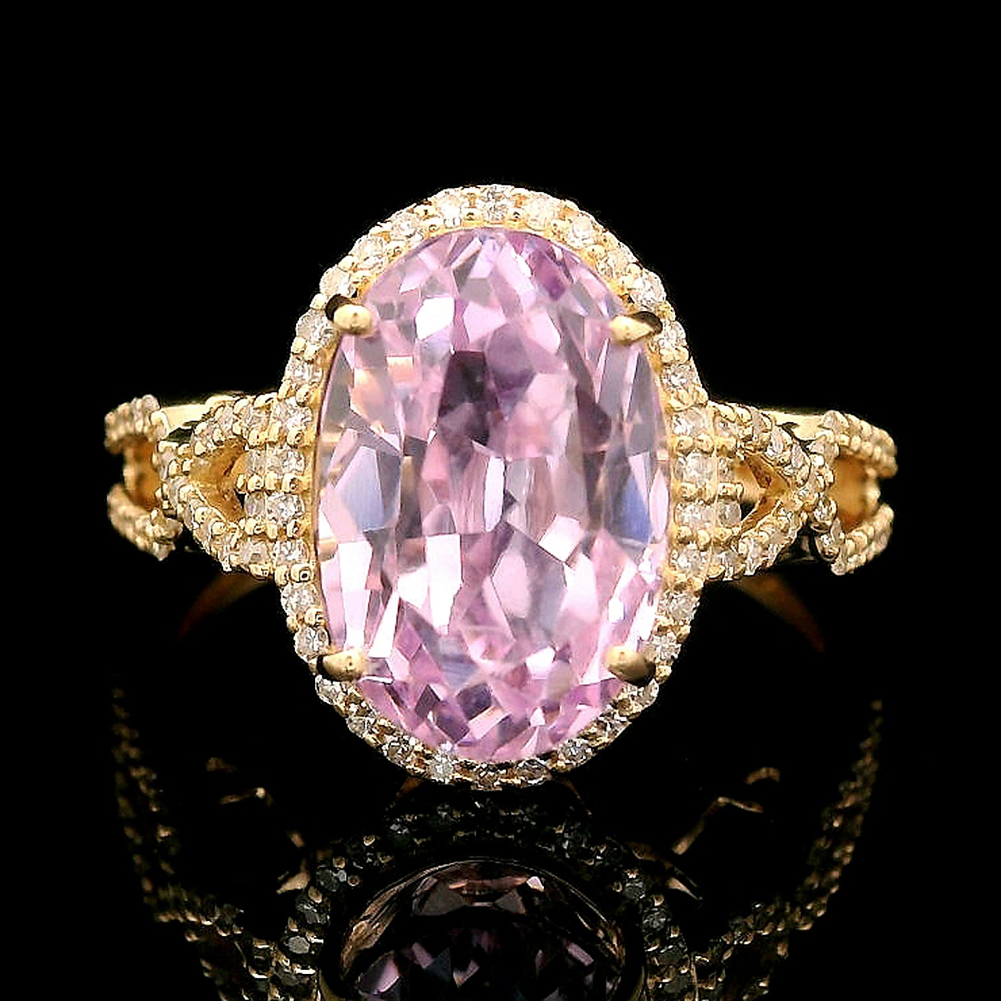 5.71 Ct Oval Mixed Cut Natural Kunzite 14K Gold Ring