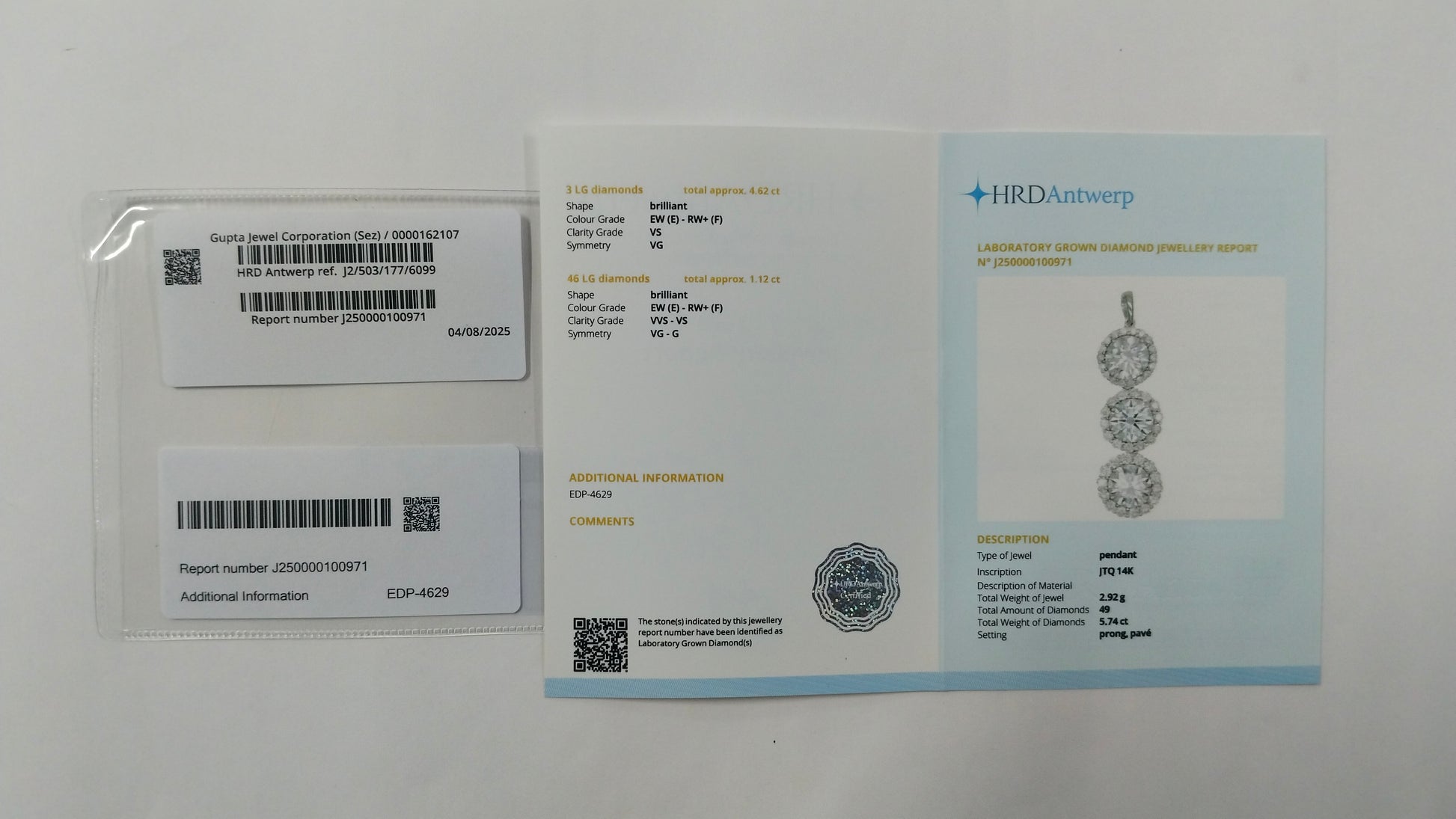 5.74-Carat Lab-Grown Diamond Round Cut Brilliant Pendant ? HRD Certified