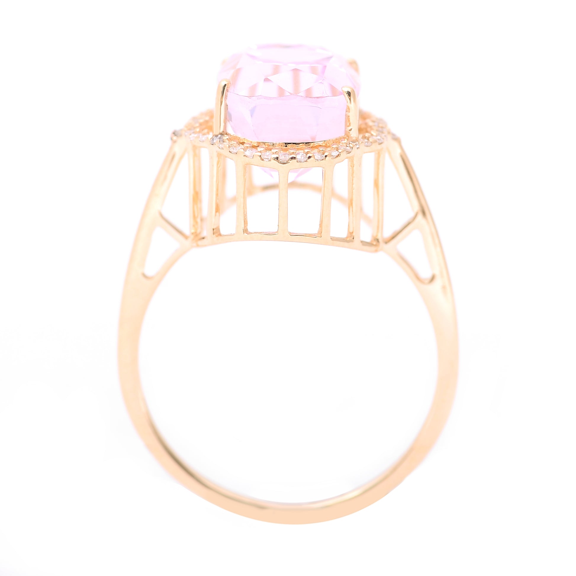 5.74 Ct Cushion Mixed Cut Natural Kunzite 14K Gold Ring