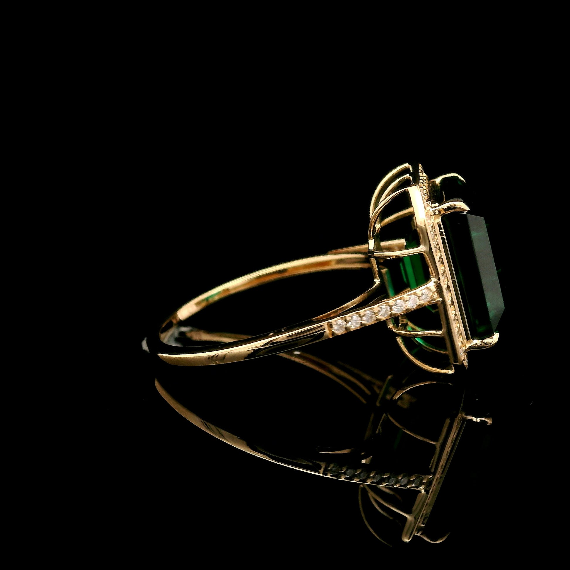 5.74 Ct Emerald Cut Lab Grown Emerald 14K Gold Ring
