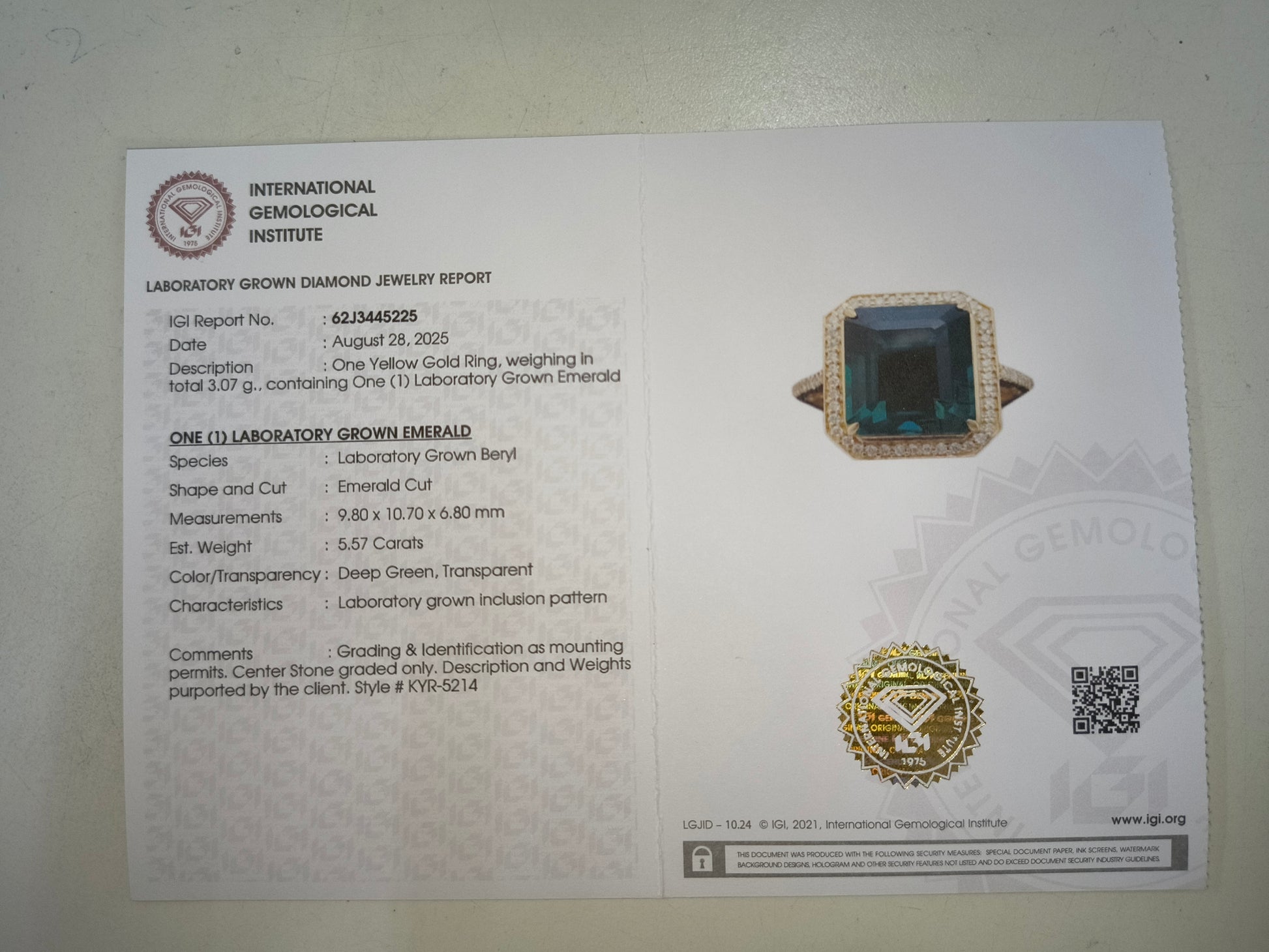 - Lab Name: International Gemological Institute (IGI)