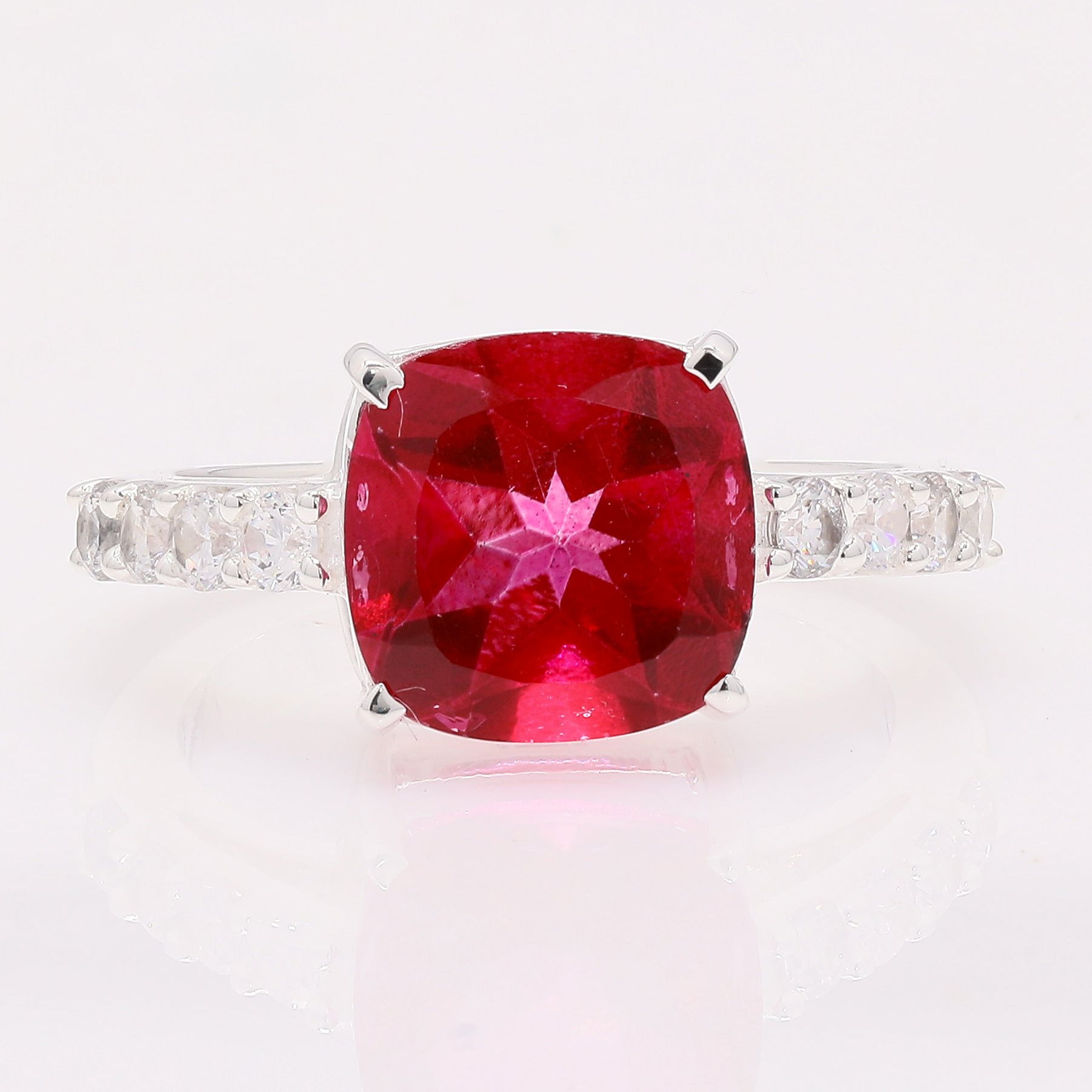 5.75 Ct Cushion Pink Topaz 925 Silver Ring