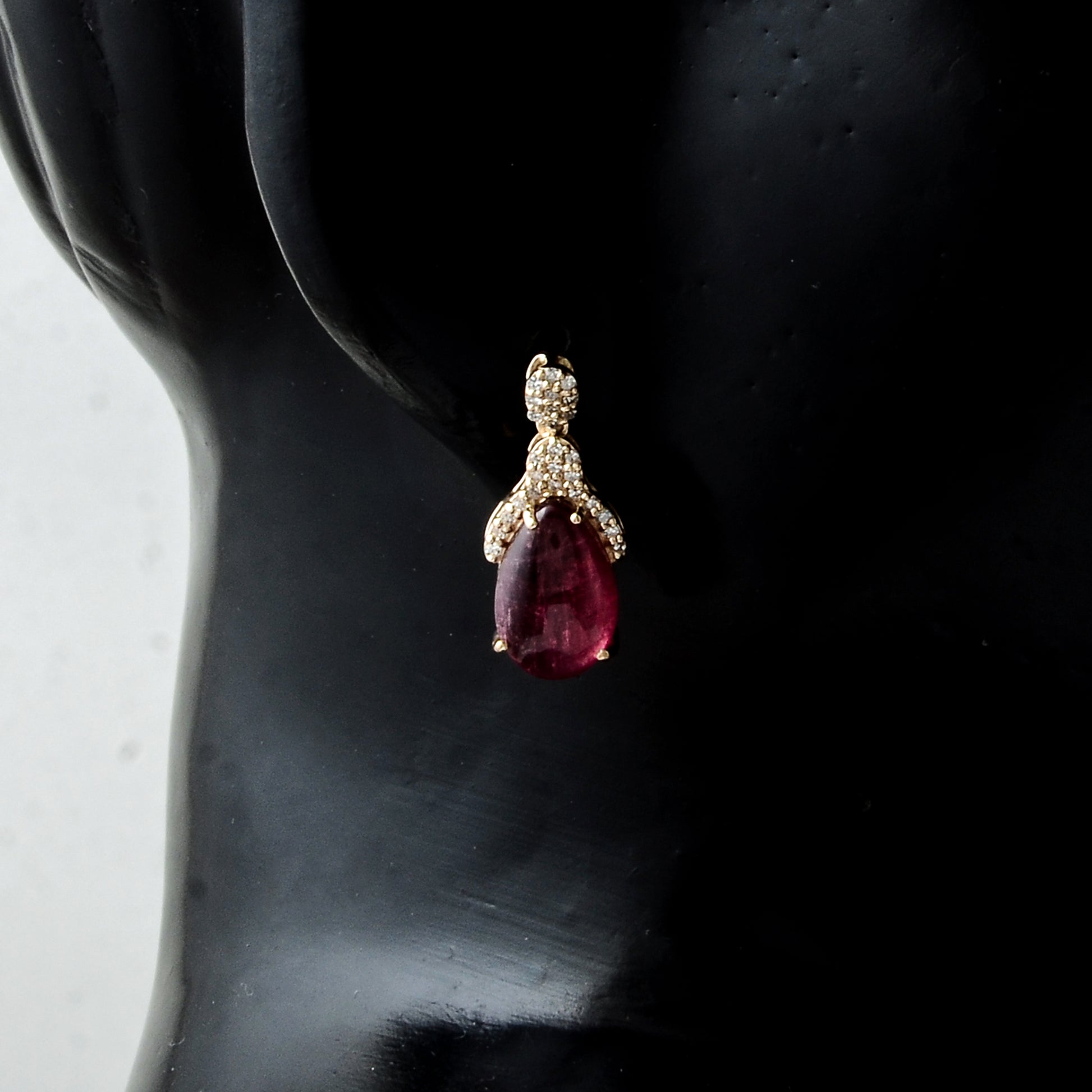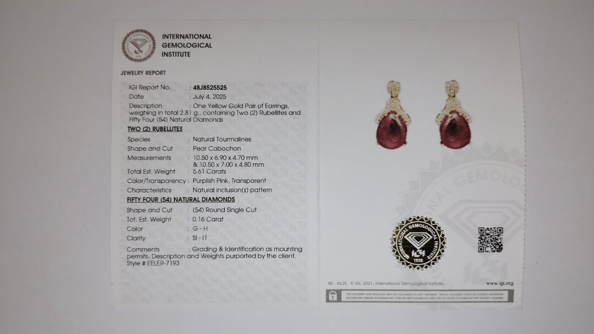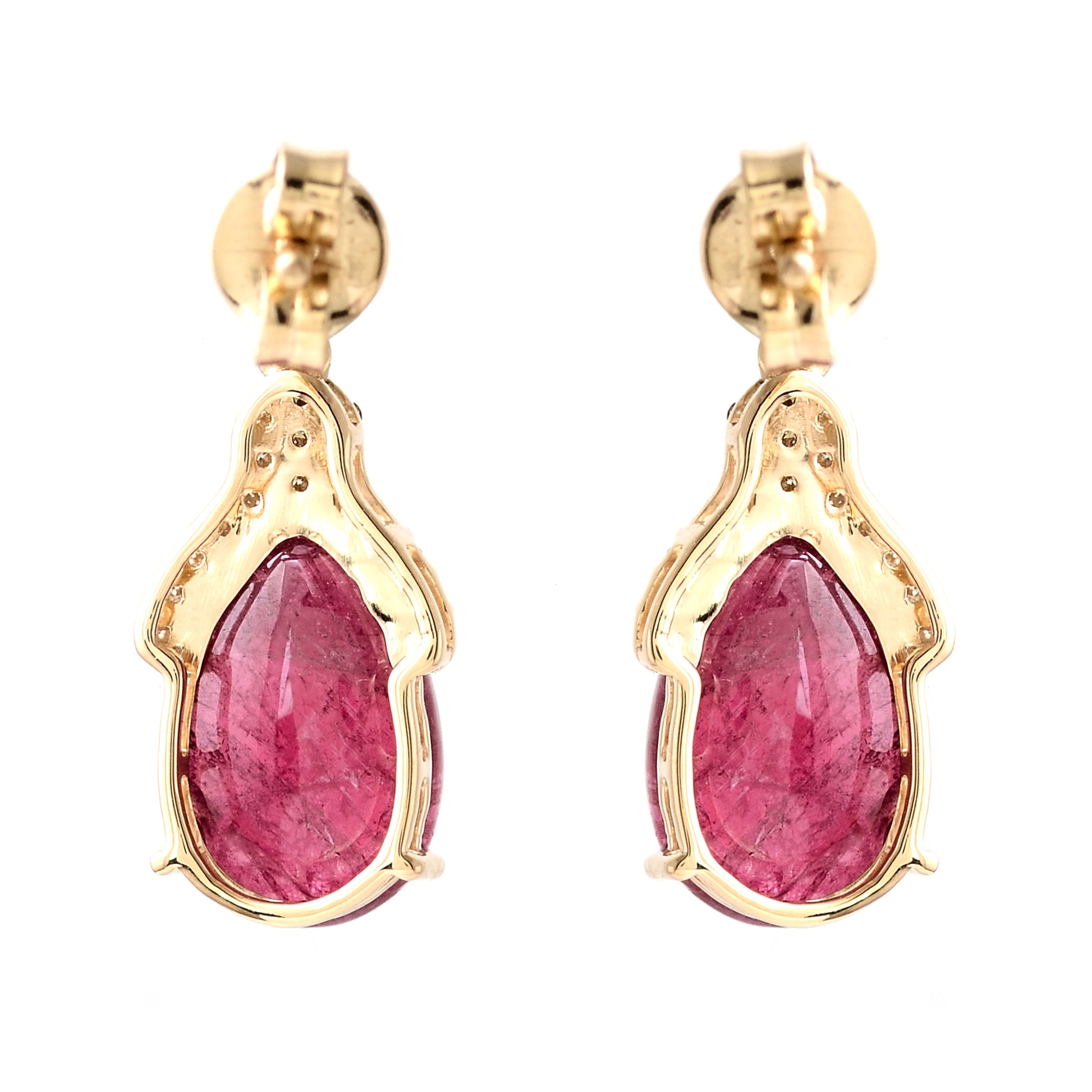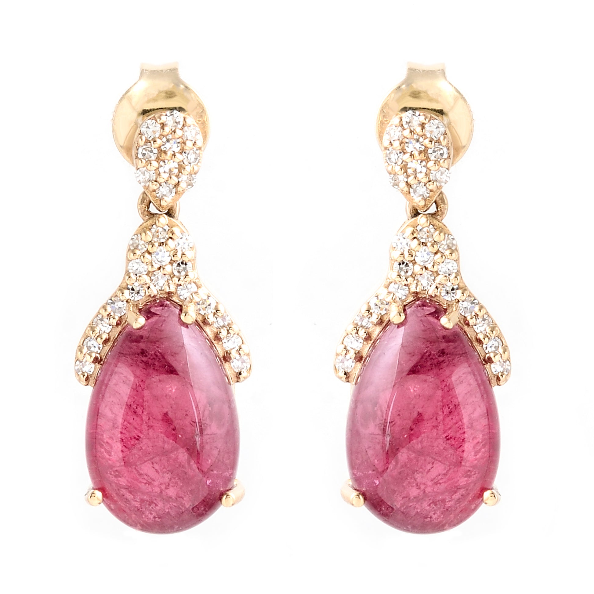 5.77 Ct Pear Cabochon Natural Tourmaline 14K Gold Earrings